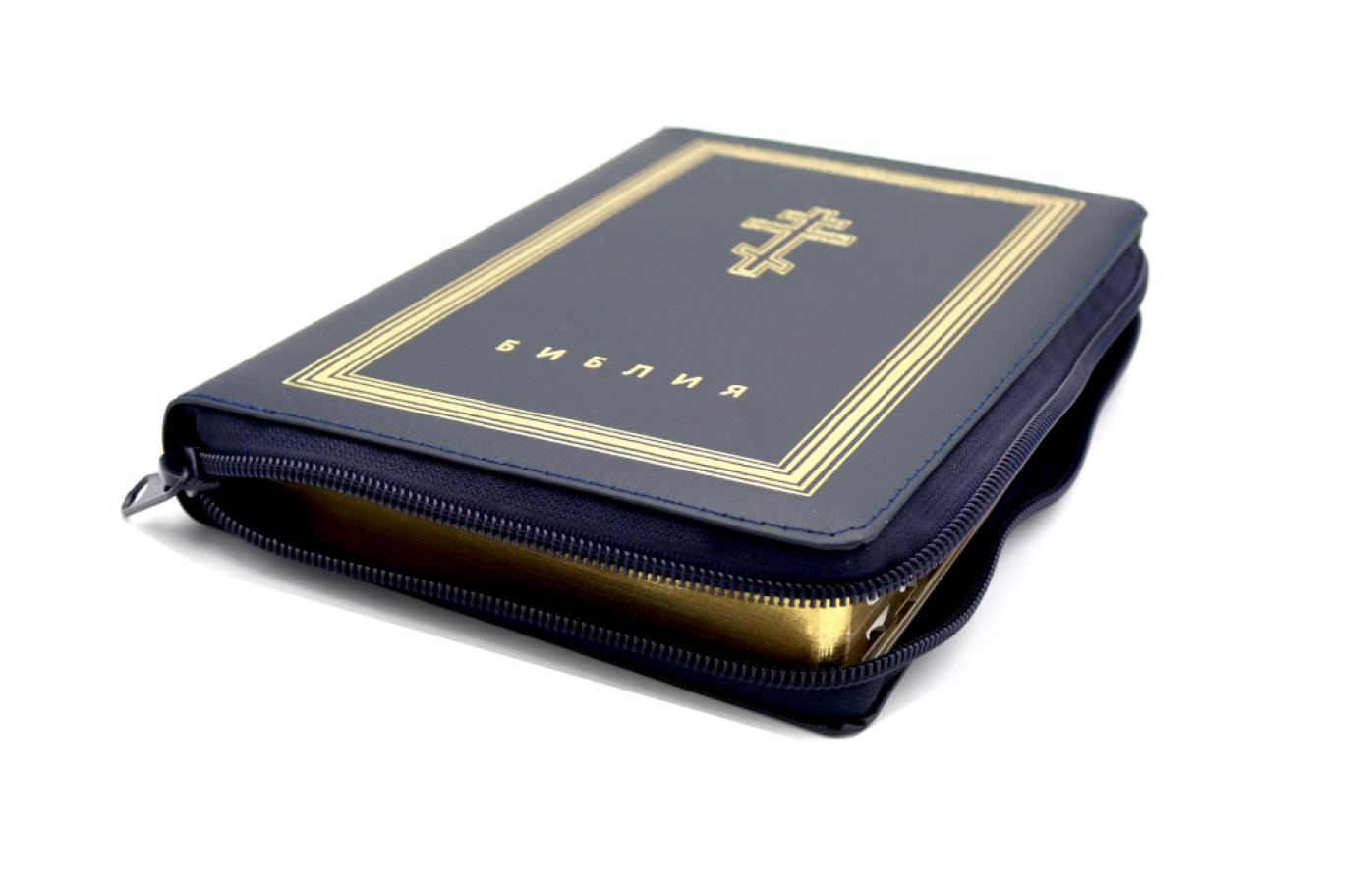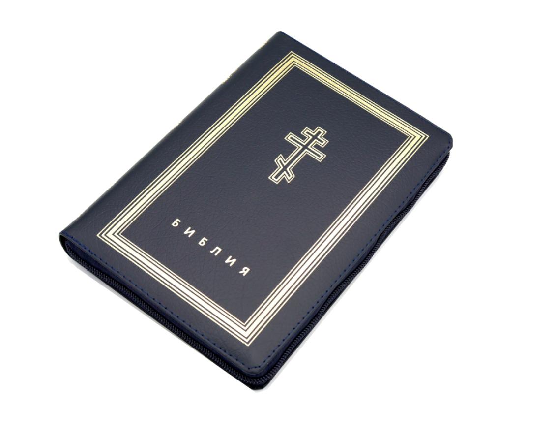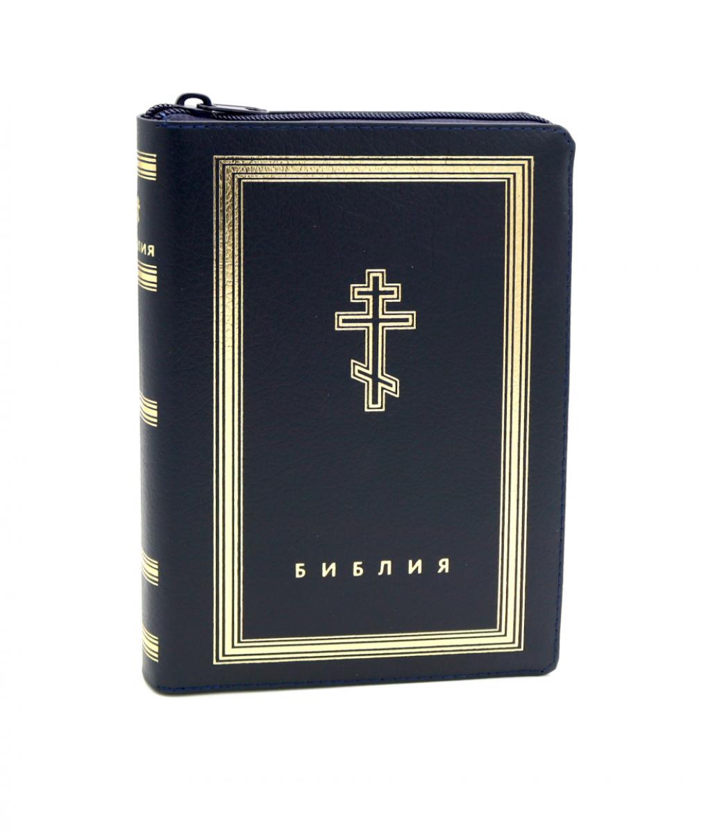 Библия. Книги Священного Писания Ветхого и Нового Завета (рециклированная кожа темно-синяя, молния, золот.обрез)