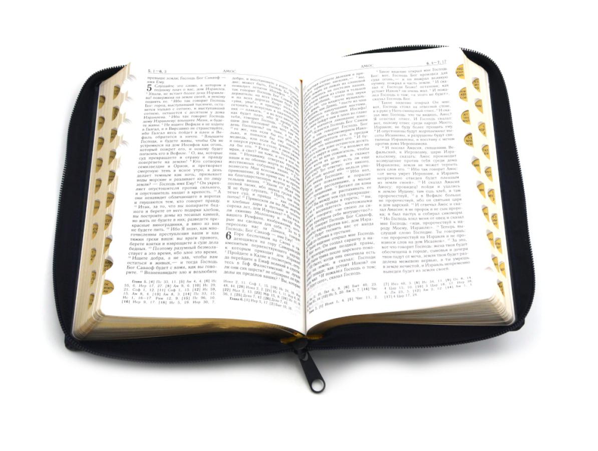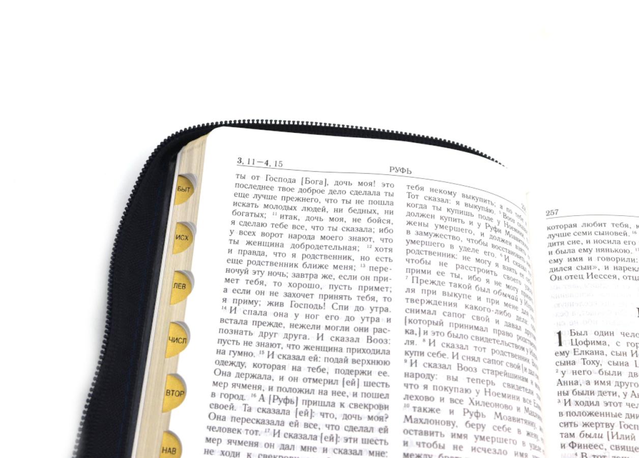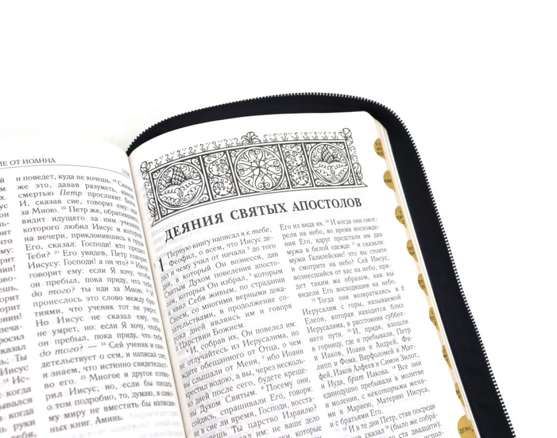 Библия. Книги Священного Писания Ветхого и Нового Завета (рециклированная кожа темно-синяя, молния, золот.обрез)