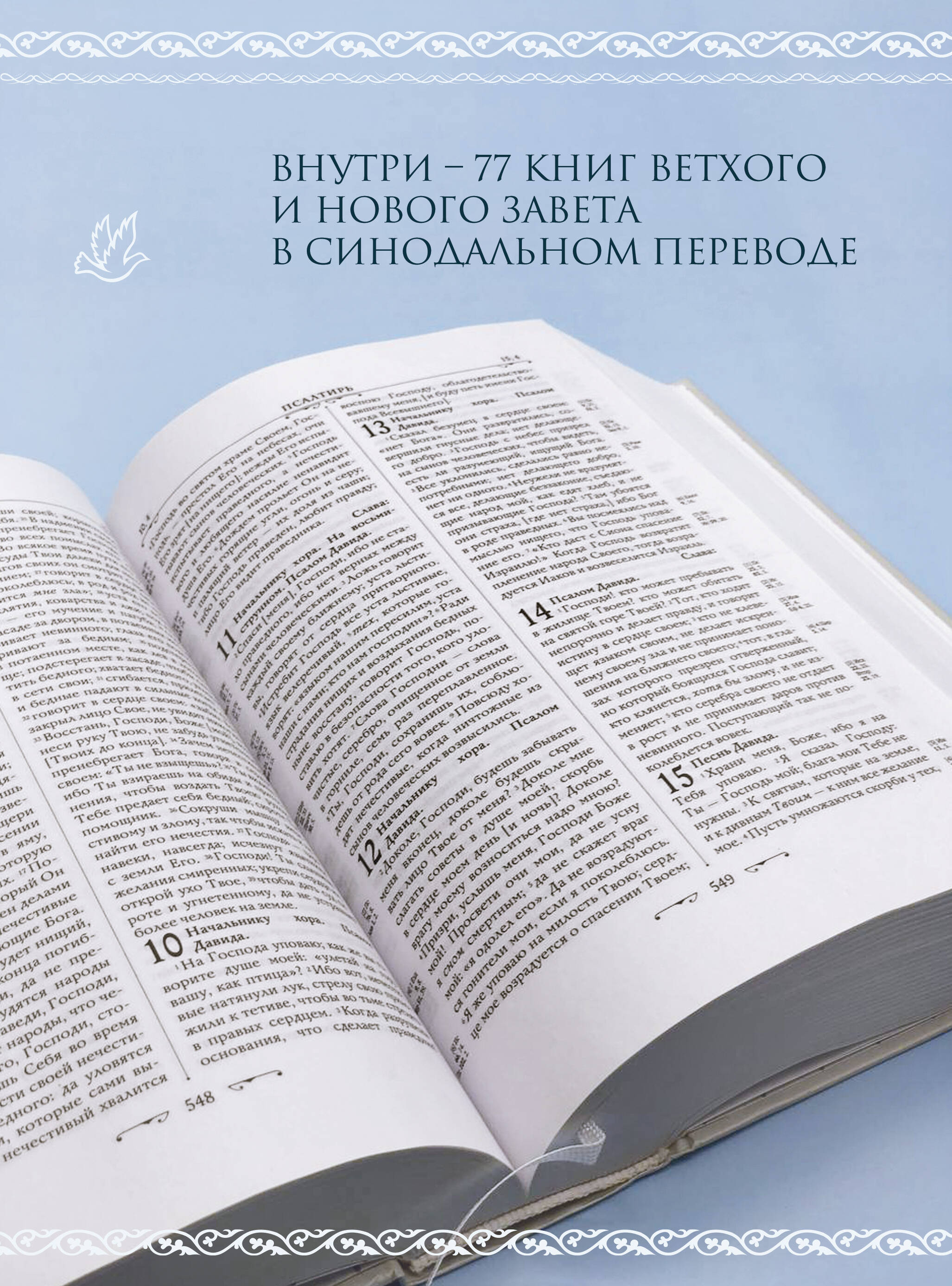 Библия. Книги Священного Писания Ветхого и Нового Завета с параллельными местами и приложениями. Полное издание, 77 книг. С неканоническими книгами. В Синодальном переводе. На русском языке. Православная. РПЦ. По благословению Святейшего Патриарха Московского и всея Руси Кирилла. С параллельными местами, указателем евангельских и апостольских церковных чтений, последовательностью евангельских событий по четырем евангелистам, последовательностью событий по книге Деяний святых апостолов, картами и другой важной справочной информацией. Большой формат. Крупный шрифт. Твердый переплет с серебряным тиснением. Подарок для мужчин, женщин, студента, молодого человека, пожилого человека, человека со слабым зрением.