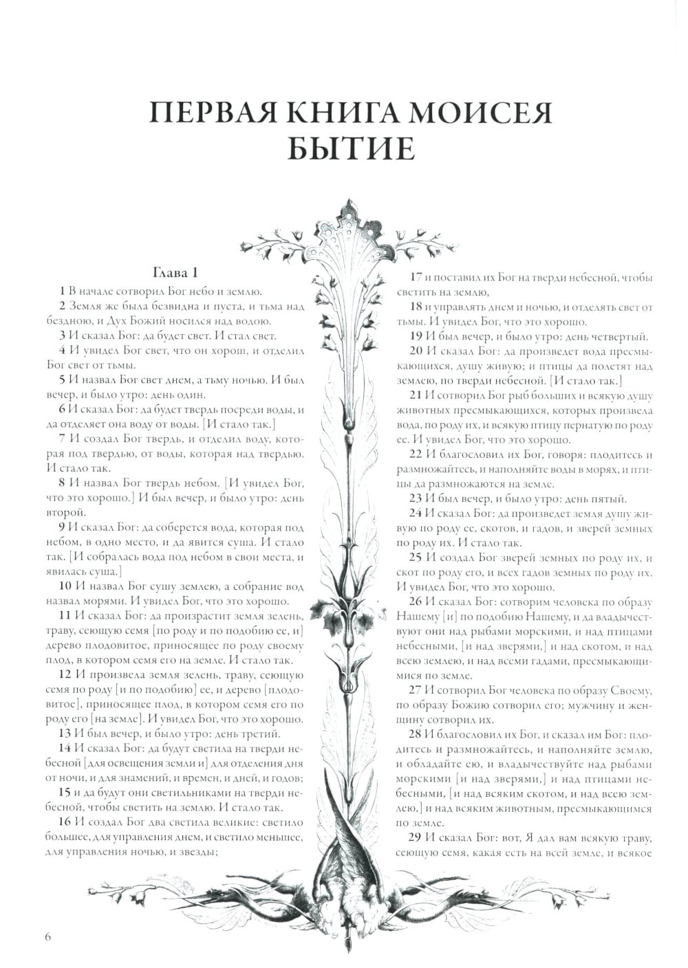 В IX в. Кирилл и Мефодий перевели Библию на старославянский язык. С появлением на Руси книгопечатания Библию стали издавать именно на церковнославянском языке; эти тексты использовались как в церковном, так и в домашнем обиходе. В 1751 г. по указу императрицы Елизаветы они были сверены с Септуагинтой, однако к тому времени церковнославянский язык понимали уже далеко не все россияне, поэтому по указу Александра I Библию начали издавать на русском языке. Перевод был выполнен Синодом - высшим государственным органом церковного управления, - поэтому он стал именоваться синодальным. Перевод 39 канонических книг Ветхого Завета был осуществлен с иврита (масоретского теста); десять его неканонических книг были переведены с греческого, и одна - с латинской Вульгаты. Перевод Нового Завета был выполнен с греческого оригинала.