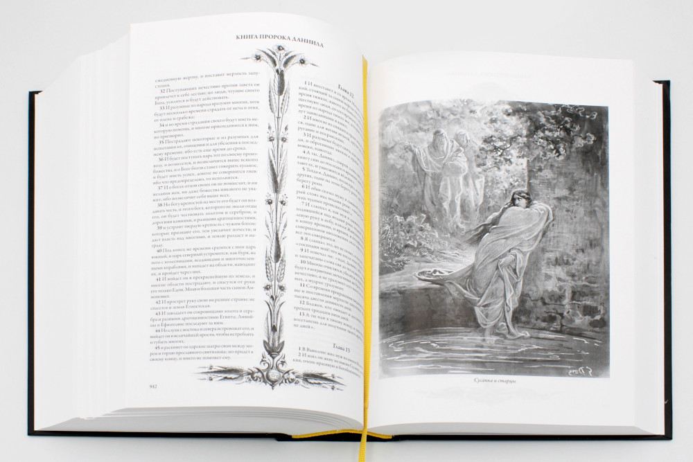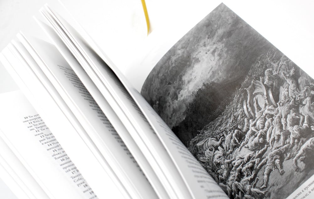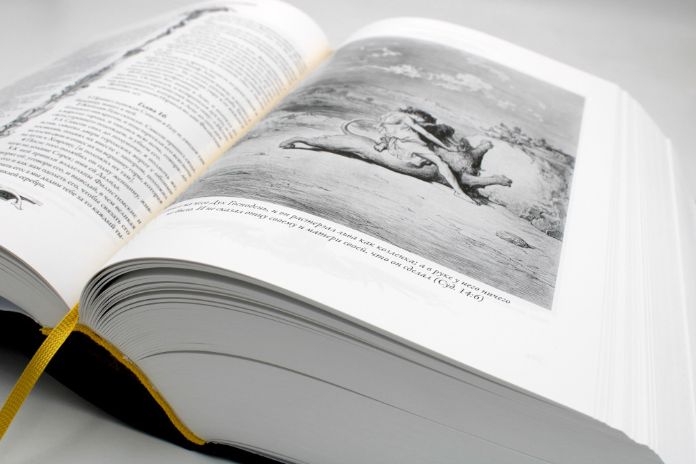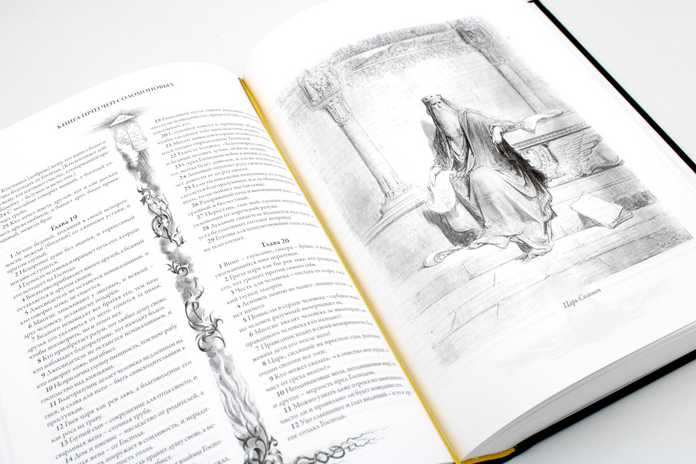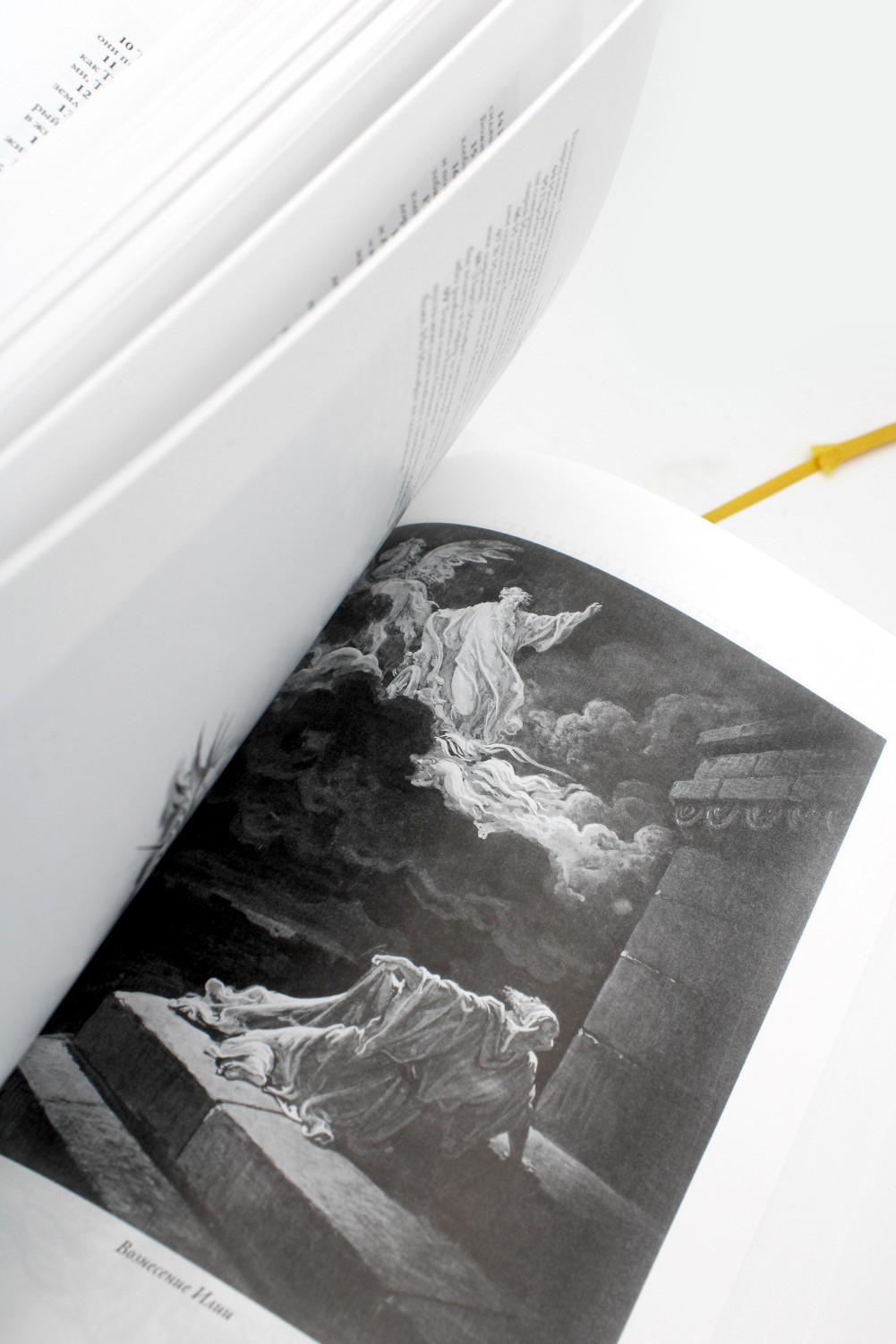 В данном издании впервые в России публикуются изображения 230 оригинальных рисунков Гюстава Доре. Талантливый французский художник работал над ними два года, когда шла подготовка к изданию Библии, переведенной на немецкий язык писателем и раввином Людвигом Филиппсоном. Библия с иллюстрациями Доре впервые была опубликована в 1866 г., и в ней были напечатаны гравюры, сделанные с рисунков мастера. Это издание стало настолько популярным, что в 1867 г. оригинальные рисунки Гюстава Доре были опубликованы отдельным трехтомником. Именно они, а не выполненные по ним гравюры воспроизводятся в настоящем издании.
