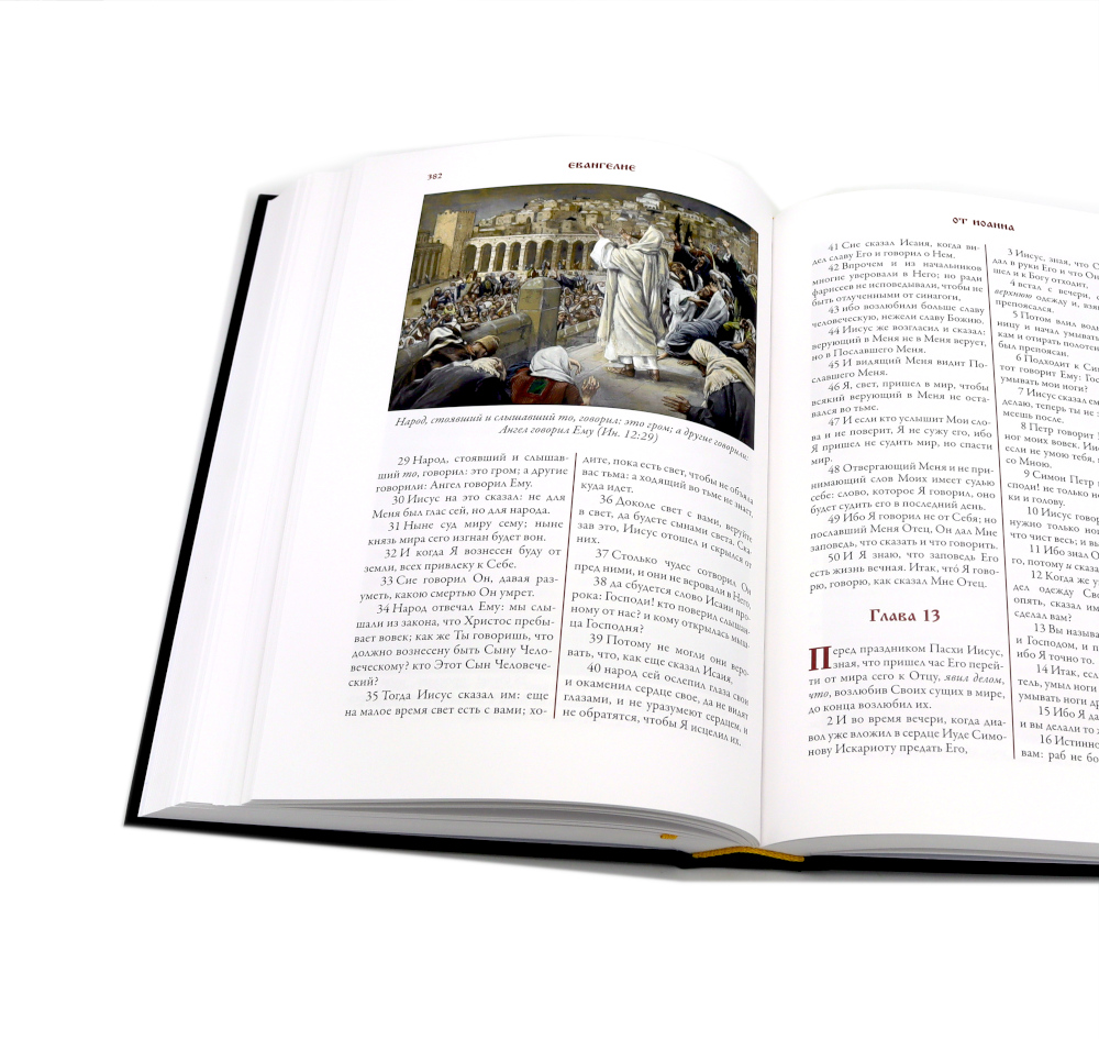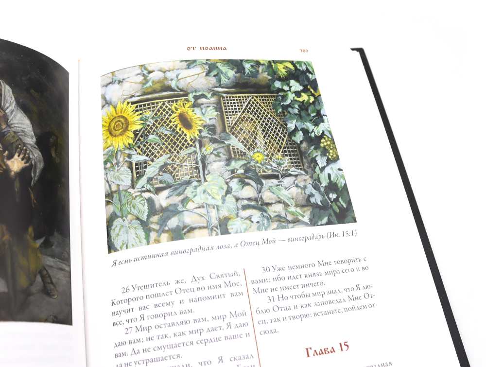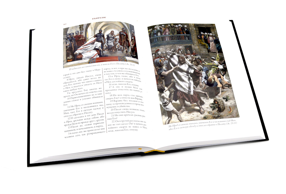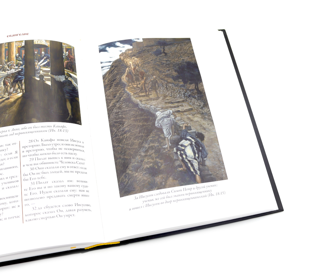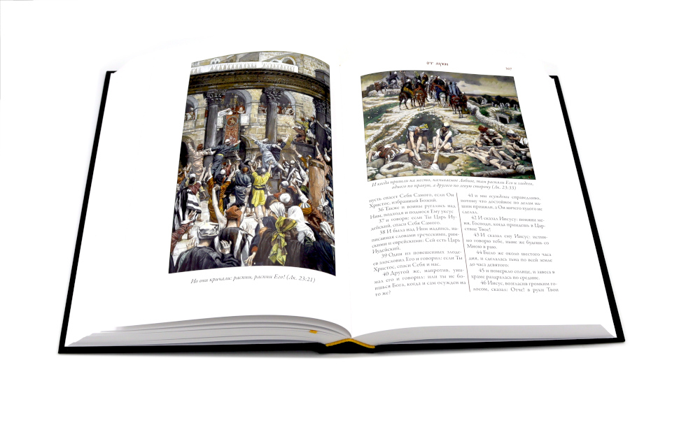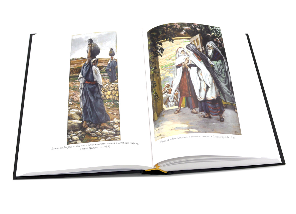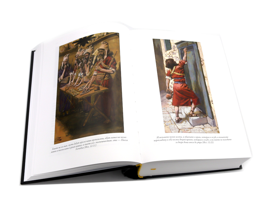 Синодальный перевод Ветхого и Нового Завета Библии в этом двухтомнике украшают более семисот великолепных цветных рисунков, выполненных выдающимся живописцем, портретистом и гравером Джеймсом Тиссо (1836-1902). Его монументальные и точные в деталях иллюстрации делают это издание Библии поистине уникальным. Библия является одной из самых издаваемых книг в мире. Библейские истории иллюстрировались сотни раз множеством художников. Однако в этом длинном ряду имен есть мастера, чьи рисунки занимают особое место. Одним из них является Гюстав Доре, выполнивший более двух сотен иллюстраций к Библии. Вторым мастером столь же высокого уровня стал живописец, портретист и гравер Джеймс Тиссо. Именно его монументальные и точные в деталях иллюстрации украшают издание Библии, которое вы держите в руках. Над этими рисунками Тиссо трудился в последние годы своей жизни. Эти его работы мало походили на картины, которые прославили художника в последней четверти XIX века. В то время на своих картинах Тиссо изображал светскую жизнь высших слоев английского общества: дам в шикарных нарядах и элегантных мужчин рядом с ними. Тиссо был скрупулезно точен в деталях, он тщательно выписывал на своих полотнах все элементы костюмов и интерьеров. Недаром этого художника по праву считали живописателем викторианской Англии. Свой фотореалистичный повествовательный стиль в живописи Тиссо органично сочетал с импрессионистической подачей цвета и неожиданными ракурсами. Одного взгляда на любую его картину достаточно, чтобы сразу понять - это работа большого мастера. Роскошными нарядами и красочными тканями Тиссо любовался еще в детстве. Его мать была модисткой, а отец торговал драпировками. Первые годы своей жизни будущий художник провел во Франции. Он появился на свет в 1836 году в Нанте, и при рождении получил имя Жак Жозеф. Когда Тиссо исполнилось семнадцать, он решил стать живописцем. Отец был против, но юноша настоял на своем и в 1856 году уехал в Париж, чтобы поступить в Школу изящных искусств. Именно там, в Париже, Тиссо познакомился с Эдгаром Дега и Эдуардом Мане; эти художники заметно повлияли на его живопись. В 1859 году Тиссо выставил несколько своих работ в Парижском салоне, и они были очень высоко оценены экспертами. С юности Тиссо был англоманом. В 1863 году он показал свои работы в Лондоне. Их успех в арт-галерее Эрнеста Гамбара подтолкнул Тиссо перебраться через Ла-Манш. В Англии художник провел большую часть своей жизни. Мать Тиссо была ревностной католичкой. Именно она привила своему сыну интерес к библейским сюжетам. К работе над иллюстрированием Библии Тиссо отнесся со всей серьезностью. В конце ХIХ века он специально предпринял путешествие по Ближнему Востоку. Отсюда «археологическая» точность его рисунков, которые позволяют увидеть события Нового Завета словно бы глазами современников Моисея и Христа.