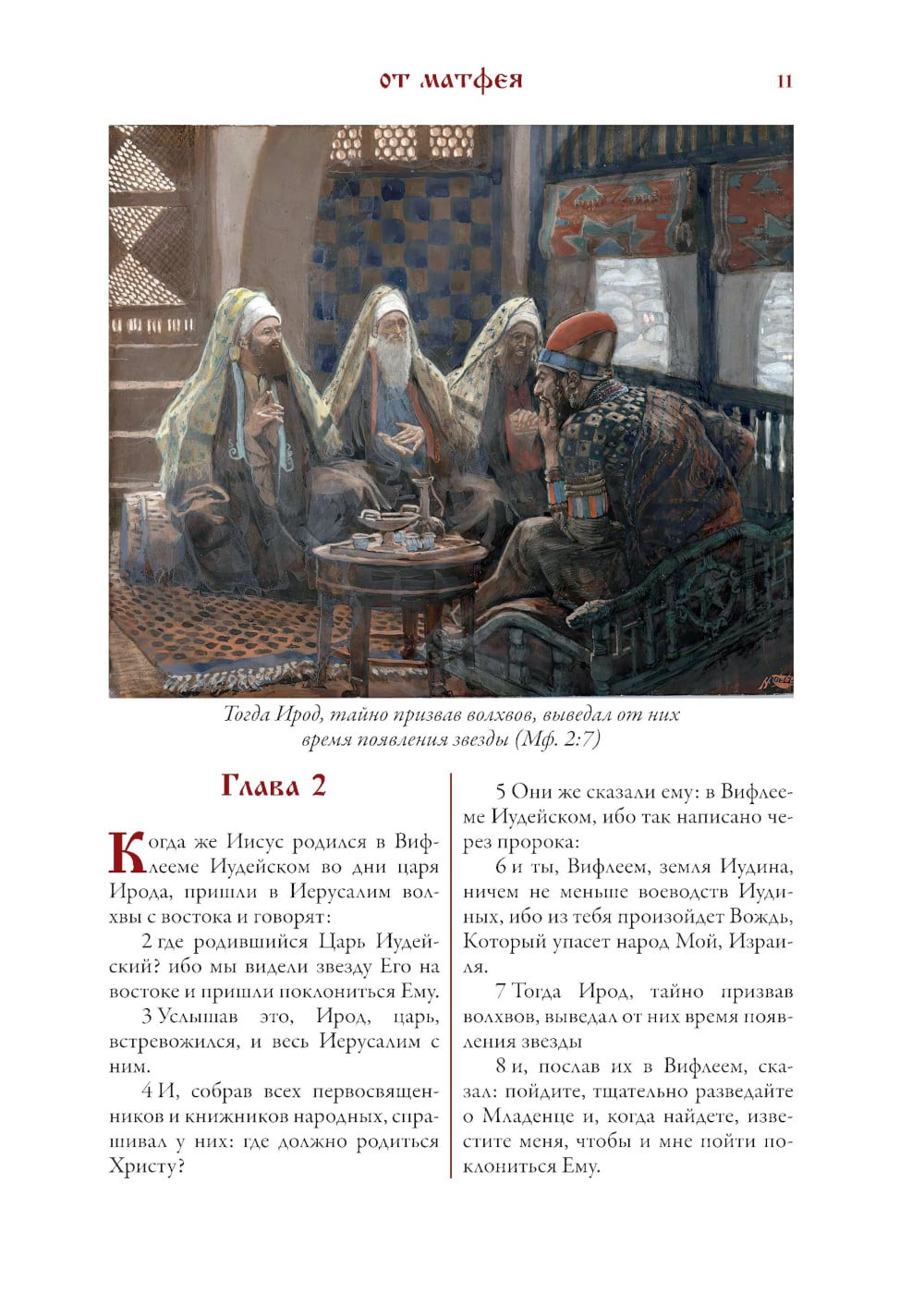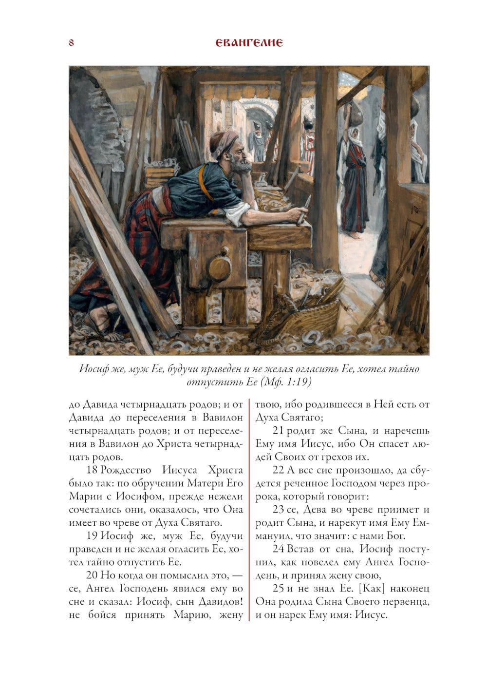 Библия является одной из самых издаваемых книг в мире. Библейские истории иллюстрировались сотни раз множеством художников. Однако в этом длинном ряду имен есть мастера, чьи рисунки занимают особое место. Одним из них является Гюстав Доре, выполнивший более двух сотен иллюстраций к Библии. Вторым мастером столь же высокого уровня стал живописец, портретист и гравер Джеймс Тиссо. Именно его монументальные и точные в деталях иллюстрации украшают издание Нового Завета, которое вы держите в руках. Над этими рисунками, а также иллюстрациями к Ветхому Завету и серией «Жизнь Христа» Тиссо трудился в последние годы своей жизни. Эти его работы мало походили на картины, которые прославили художника в последней четверти XIX века. В то время на своих картинах Тиссо изображал светскую жизнь высших слоев английского общества: дам в шикарных нарядах и элегантных мужчин рядом с ними. Тиссо был скрупулезно точен в деталях, он тщательно выписывал на своих полотнах все элементы костюмов и интерьеров. Недаром этого художника по праву считали живописателем викторианской Англии. Свой фотореалистичный повествовательный стиль в живописи Тиссо органично сочетал с импрессионистической подачей цвета и неожиданными ракурсами. Одного взгляда на любую его картину достаточно, чтобы сразу понять - это работа большого мастера. Роскошными нарядами и красочными тканями Тиссо любовался еще в детстве. Его мать была модисткой, а отец торговал драпировками. Первые годы своей жизни будущий художник провел во Франции. Он появился на свет в 1836 году в Нанте, и при рождении получил имя Жак Жозеф. Когда Тиссо исполнилось семнадцать, он решил стать живописцем. Отец был против, но юноша настоял на своем и в 1856 году уехал в Париж, чтобы поступить в Школу изящных искусств. Именно там, в Париже, Тиссо познакомился с Эдгаром Дега и Эдуардом Мане; эти художники заметно повлияли на его живопись. В 1859 году Тиссо выставил несколько своих работ в Парижском салоне, и они были очень высоко оценены экспертами. С юности Тиссо был англоманом. В 1863 году он показал свои работы в Лондоне. Их успех в арт-галерее Эрнеста Гамбара подтолкнул Тиссо перебраться через Ла-Манш. В Англии художник провел большую часть своей жизни. Мать Тиссо была ревностной католичкой. Именно она привила своему сыну интерес к библейским сюжетам. К работе над иллюстрированием Библии Тиссо отнесся со всей серьезностью. В конце ХIХ века он специально предпринял путешествие по Ближнему Востоку. Отсюда «археологическая» точность его рисунков, которые позволяют увидеть события Нового Завета словно 6ы глазами современников Христа и его учеников.| Издательство | СЗКЭО |