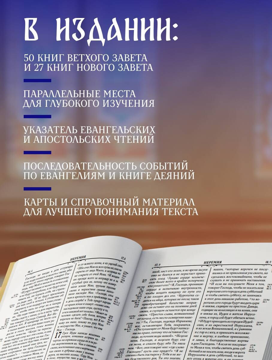 Полная Библия в русском Синодальном переводе. 50 книг Ветхого Завета и 27 книг Нового Завета. С указателем евангельских и апостольских церковных чтений, последовательностью евангельских событий по четырем евангелистам, последовательностью событий по книге Деяний святых апостолов, картами и другими приложениями. Перевод имеет высокий авторитет и широко используется не только в православной Церкви, но и в других христианских конфессиях, использующих русский язык для проповеди. Эксклюзивное оформление в золоте.| Издательство | ООО "Издательство "Эксмо" |