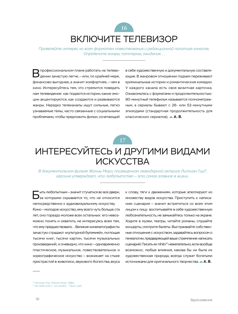 «Чтобы сделать великий фильм, необходимы три вещи - сценарий, сценарий и ещё раз сценарий». - Альфред Хичкок, режиссёр Можно сколько угодно спорить, кто же является главным творцом фильма. Актёр, который воплощает образ в кадре? Режиссёр, который вдыхает в историю жизнь? Оператор, который выбирает, какой будет картинка? Или сценарист, который пишет историю? И в этом споре к единому мнению не прийти никак. Это вечный спор сродни «Что было раньше: курица или яйцо?». Но мы-то с вами знаем, что раньше появился сценарий. «Библия сценариста» должна стать настольной книгой каждого, кто работает со сценариями. Все нюансы работы, все противные мелочи и все базовые требования - всё здесь. 365 правил, на понятных примерах из популярных фильмов. Чётко, ёмко, лаконично, и всё по делу! Эта книга станет отличным подарком как для начинающего сценариста, так и для опытного мастера. Весь цикл работы над сценарием уместился в 365 простых правил. И, что большая редкость для сценарных книг, всё это на качественной бумаге с яркими иллюстрациями!| Издательство | Эксмо |