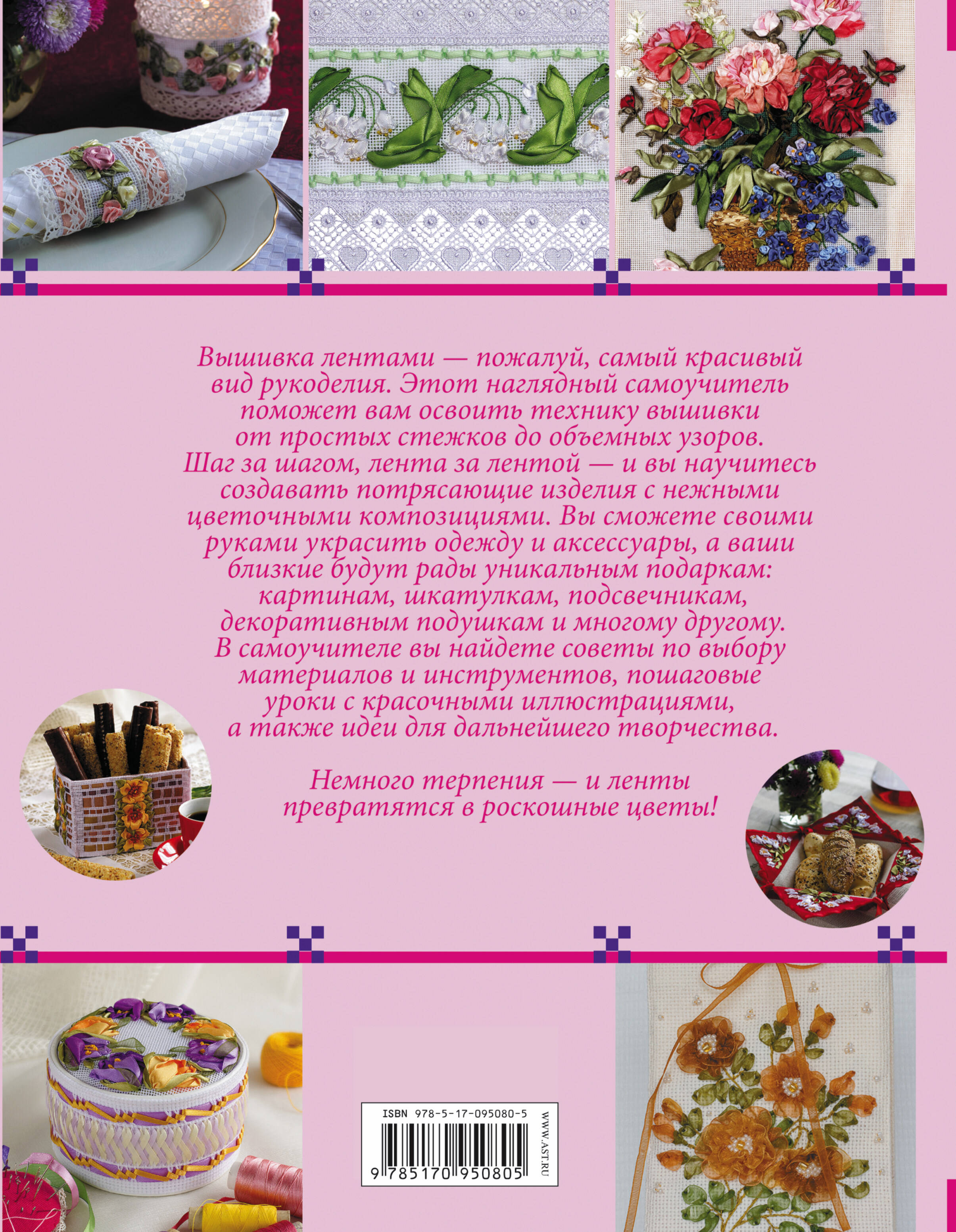 Вышивка лентами - пожалуй, самый красивый вид рукоделия. Этот наглядный самоучитель поможет вам освоить технику вышивки от простых стежков до объемных узоров. Шаг за шагом, лента за лентой - и вы научитесь создавать потрясающие изделия с нежными цветочными композициями. Вы сможете своими руками украсить одежду и аксессуары, а ваши близкие будут рады уникальным подаркам: картинам, шкатулкам, подсвечникам, декоративным подушкам и многому другому. В самоучителе вы найдете советы по выбору материалов и инструментов, пошаговые уроки с красочными иллюстрациями, а также идеи для дальнейшего творчества. Немного терпения - и ленты превратятся в роскошные цветы!| Издательство | Издательство "АСТ" |