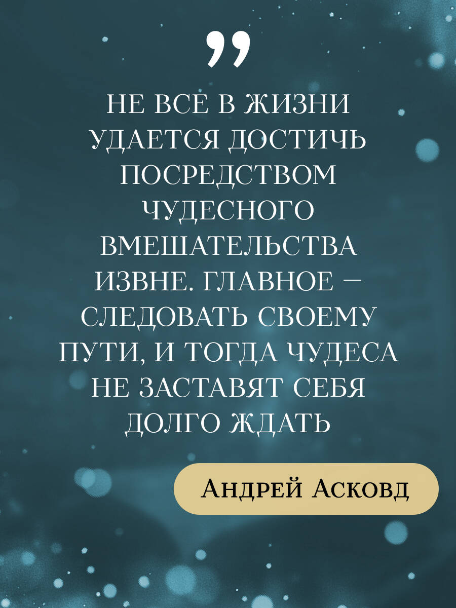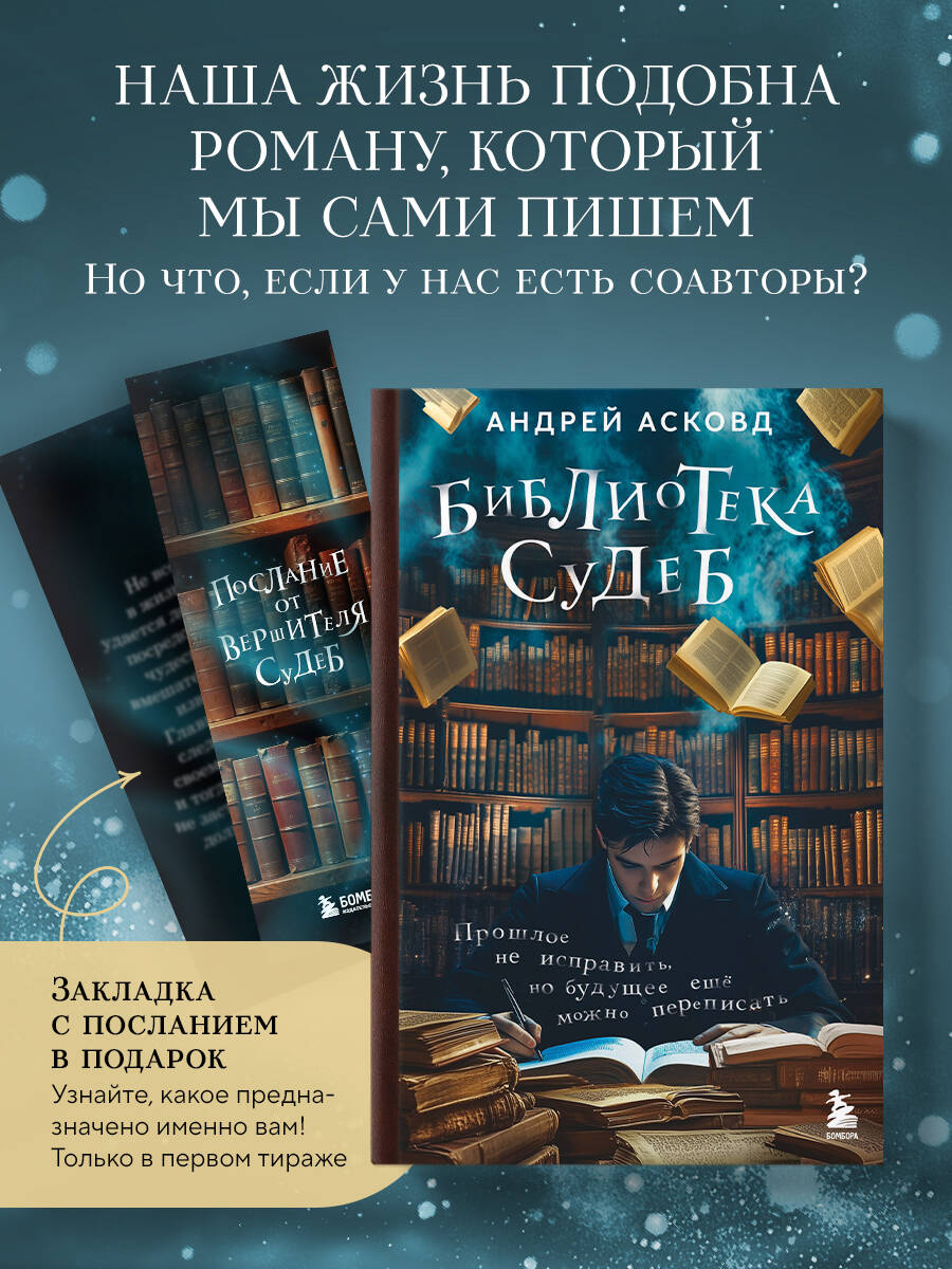 Творчество Андрея Асковда хорошо известно российскому читателю по серии его книг о забавных приключениях двух мальчишек - «Как мы с Вовкой». На этот раз автор обратился к захватывающей теме: жизни после жизни. Его новый роман в жанре магического реализма рассказывает о не признанном на Земле писателе, которому удалось-таки сделать отличную карьеру, но только после того, как он... перебрался в другой мир, который удивительным образом отсылает нас к реалиям советского прошлого. Кто же победит в схватке между добром и злом, честью и подлостью, верой в чудо и неверием в собственные силы. Лихо закрученный сюжет, пронизывающие до мурашек истории, легкость и ирония в фирменном авторском стиле Андрея Асковда и, конечно, таинственная библиотека, судьба которой вызывает массу вопросов как у светлых, так и у темных сил - чтение этой книги станет для вас по-настоящему захватывающим испытанием, а настоящие «исследователи будущего» смогут отыскать в первом тираже атмосферную закладку с особенным посланием от Вершителя Судеб. Если вы не верите в чудеса - прочтите эту книгу. Если верите - прочтите тоже. Внутри масса земных историй, которые не только помогут вам поверить в то, что лучший из миров точно где-то рядом. Но, возможно, и изменить собственную жизнь. Как это получилось у Лизы, которая уж и не надеялась родить ребенка, а стала многодетной мамой. У Миши, которому Ангел подарил настоящие крылья и помог вылечиться от болезни. И у Сергея, который никогда бы не увиделся со своими родителями, если бы не одна странная игрушка с барахолки. ...Прошлое - не изменить. Но будущее еще можно переписать. «Книга, которая заставила меня плакать над каждой рассказанной историей. Где-то от грусти, где-то от радости. Хочется надеяться, что каждый встретит такого Вершителя, который добавит в жизнь Чуда! Рекомендую прочитать всем тем, кто любит хорошие добрые книги, и тем, кто не верит в чудеса». - Елена, автор блога elena_gricai
