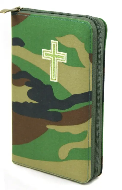 Священное Писание в Синодальном переводе. Сохранено постраничное расположение текста издания 1947 г. (набор в 2 колонки, указатель параллельных мест посередине страницы). 120 х 165 мм, «камуфляжный» переплет, закладка.