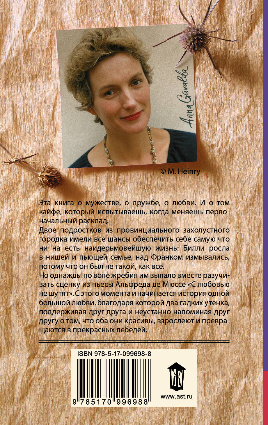 Эта книга о мужестве, о дружбе, о любви. И о том кайфе, который испытываешь, когда меняешь первоначальный расклад. Двое подростков из провинциального захолустного городка имели все шансы обеспечить себе самую что ни на есть наидерьмовейшую жизнь: Билли росла в нищей и пьющей семье, над Франком измывались, потому что он был не такой, как все. Но однажды по воле жребия им выпало вместе разучивать сценку из пьесы Альфреда де Мюссе "С любовью не шутят". С этого момента и начинается история одной большой любви, благодаря которой два гадких утенка, поддерживая друг друга и неустанно напоминая друг другу о том, что оба они красивы, взрослеют и превращаются в прекрасных лебедей.| Издательство | Издательство "АСТ" |