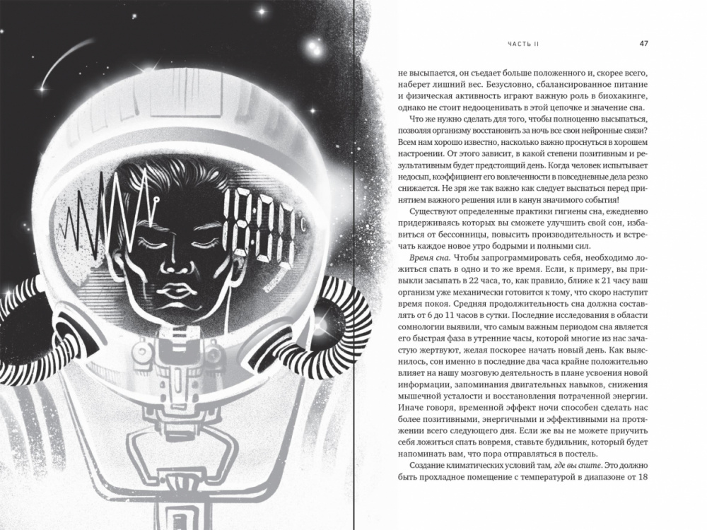 Валихан разбирает по порядку все этапы настройки: режим дня, питание, физическая подготовка, психика. Он рассматривает приемы биохакинга в работе с питанием, рассказывает, на что влияет нехватка витаминов и минералов, как поддержать организм изнутри. Предлагает изучить разные виды физической активности, подчеркивая, что не нужно гнаться за трендами, нужно выбрать то, что понравится именно вам. Говорит о влиянии музыки и социума в том числе.