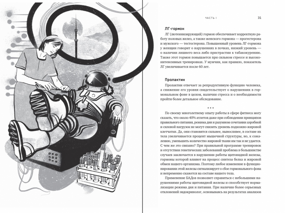 Еще один плюс книги - подача информации в доступной форме. Вам не потребуется медицинское образование, чтобы понять, к примеру, для чего нужна диагностика, какие стоит сдать анализы и на что влияют эти показатели. Автор рассказывает обо всем понятным языком с примерами из мира фитнеса и своего опыта и дает рекомендации по применению.