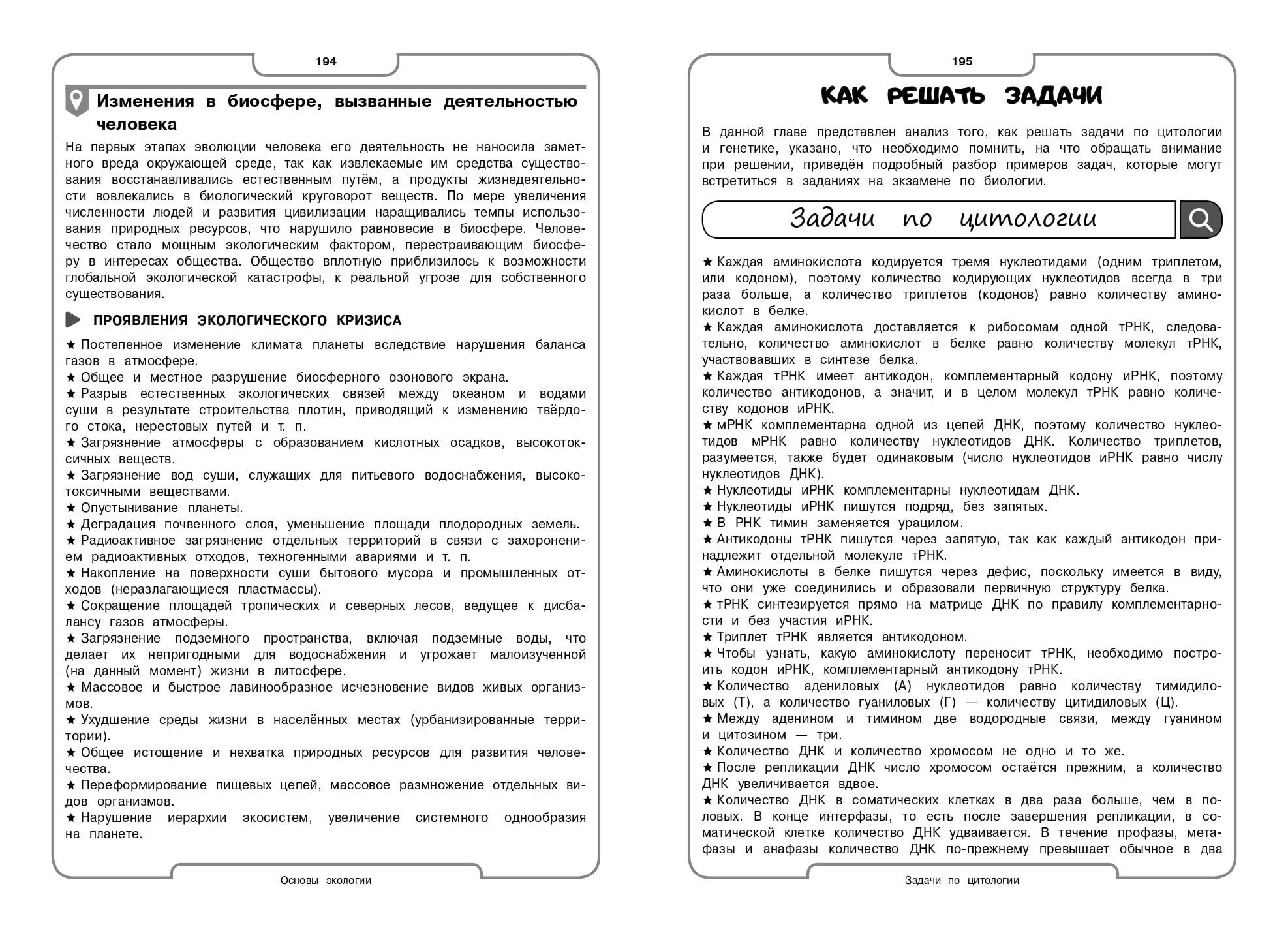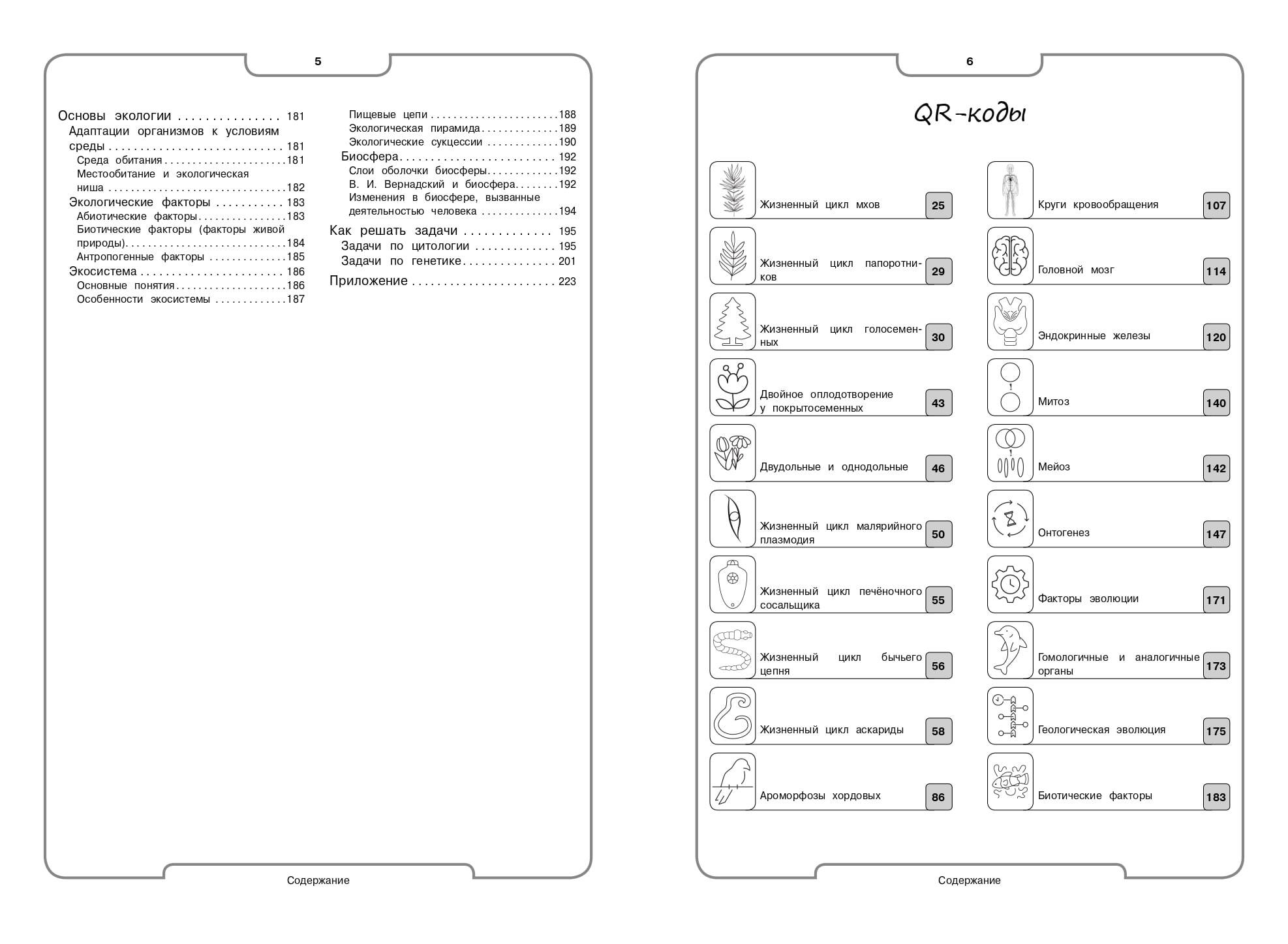 В книге сведения по основным темам школьного курса биологии сопровождаются примерами, схемами и таблицами, что позволит эффективнее и проще усвоить информацию. Главное отличие издания от множества других - обучающие анимационные видео, которые помогут учащимся разобраться со сложными темами, не прибегая к помощи репетиторов. Ученику нужно лишь отсканировать QR-код, после чего на устройстве откроется ссылка на короткие видеоуроки, в которых содержится развёрнутый поясняющий материал по темам, особо актуальным для сдачи экзаменов. Книга в комплекте с обучающими видеоматериалами - незаменимый инструмент при самостоятельном изучении предмета. Издание будет полезно учащимся средних и старших классов, учителям, а также всем, кто интересуется биологией.| Издательство | ООО "Издательство "Эксмо" |