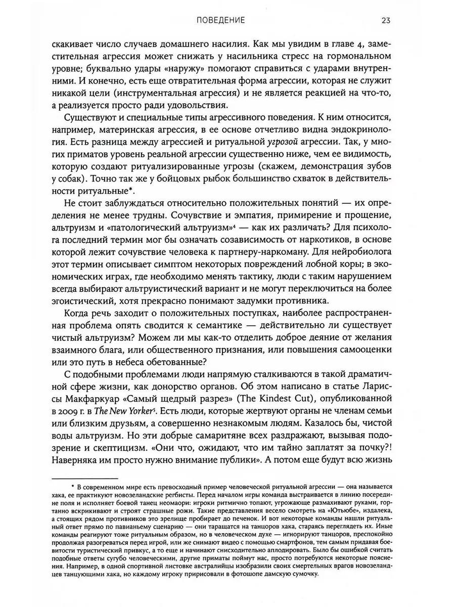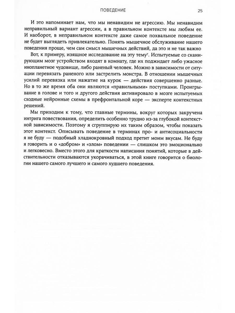 Как говорит знаменитый приматолог и нейробиолог Роберт Сапольски, если вы хотите понять поведение человека и природу хорошего или плохого поступка, вам придется разобраться буквально во всем - и в том, что происходило за секунду до него, и в том, что было миллионы лет назад. В книге автор поэтапно - можно сказать, в хронологическом разрезе - и очень подробно рассматривает огромное количество факторов, влияющих на наше поведение. Как работает наш мозг? За что отвечает миндалина, а за что нам стоит благодарить лобную кору? Что «ненавидит» островок? Почему у лондонских таксистов увеличен гиппокамп? Как связаны длины указательного и безымянного пальцев и количество внутриутробного тестостерона? Чем с точки зрения нейробиологии подростки отличаются от детей и взрослых? Бывают ли «чистые» альтруисты? В чем разница между прощением и примирением? Существует ли свобода воли? Как сложные социальные связи влияют на наше поведение и принятие решений? И это лишь малая часть вопросов, рассматриваемых в масштабной работе известного ученого.| Издательство | Альпина нон-фикшн |