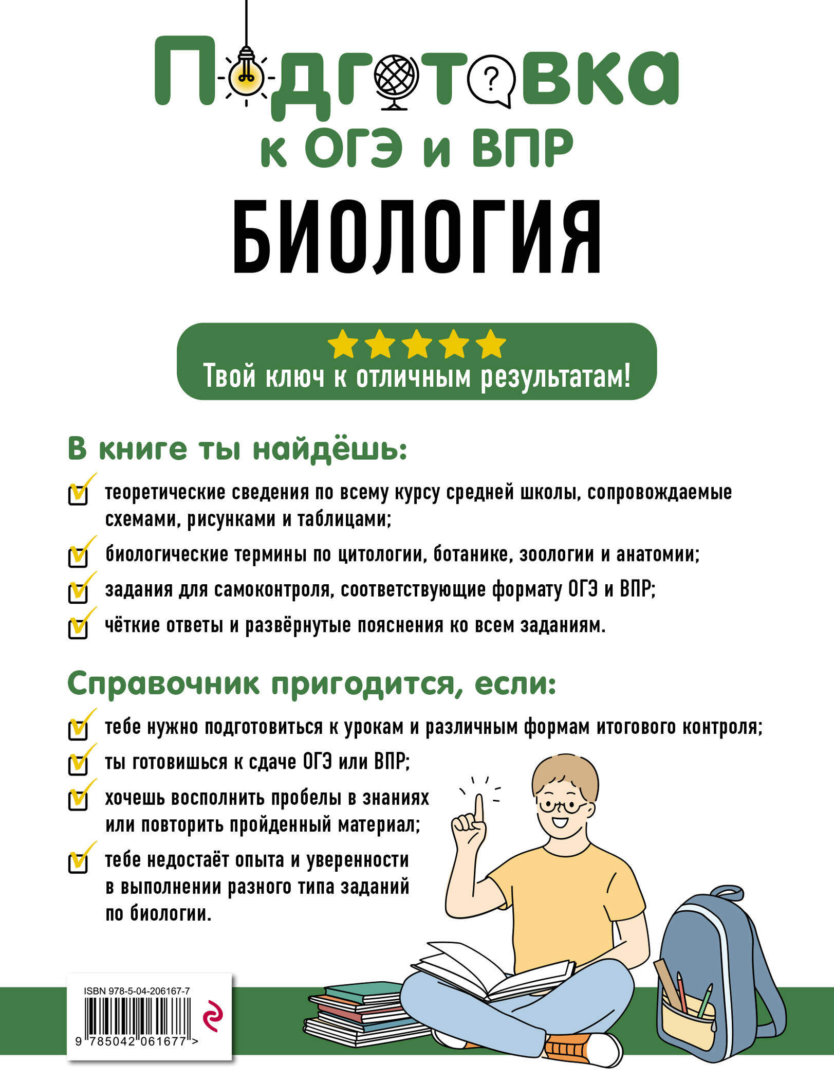 Вам нужно подготовиться к ОГЭ и ВПР по биологии, но не знаете, с чего начать? Хотите закрепить полученные в школе знания, не тратя время на лишнюю информацию в учебниках? Тогда эта книга именно для вас! В ней вас ждет: • только нужная теория; • наглядные таблицы и схемы; • полезные подсказки и рекомендации; • решение реальных заданий; • возможность проверить свои знания. В пособии систематизирована информация, которая поможет школьникам написать ВПР, ОГЭ и другие виды итоговых работ. В справочнике вы увидите не сплошной поток текста, а доступную теорию, которая будет подкрепляться практическими заданиями. Книга станет идеальным помощником для школьников 5, 6, 7, 8 и 9 классов, репетиторов и учителей. Также она будет полезна для занятий родителей с детьми. Начните эффективную подготовку к экзаменам 2026 прямо сейчас!| Издательство | ООО "Издательство "Эксмо" |