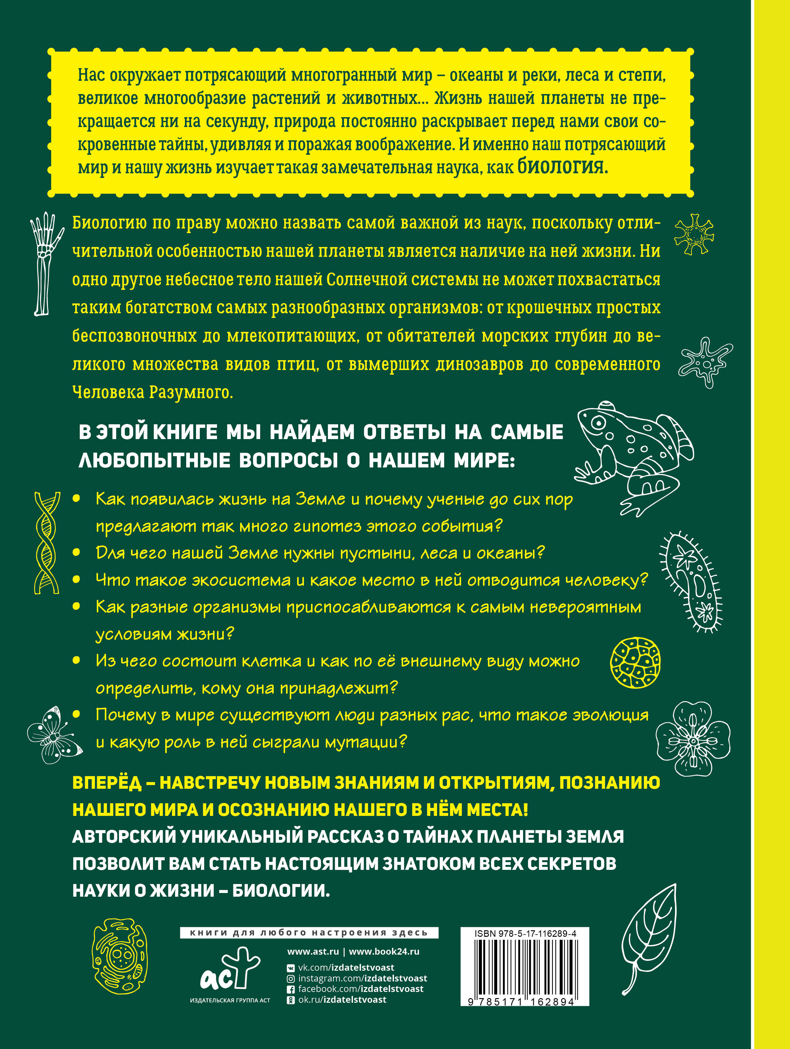 В книге Андрея Шляхова - увлекательная, но тем не менее проверенная и важная информация о нашем мире и всех проявлениях жизни в нем. Появление жизни на Земле, развитие организмов и экосистем, место человека в пищевых цепочках - об этом и многом другом вы узнаете в "Биологии на пальцах". А иллюстрации и многочисленные фотографии помогут визуально запомнить всю информацию о взаимодействии в природе, которую необходимо знать каждому ребенку.| Издательство | Издательство "АСТ" |