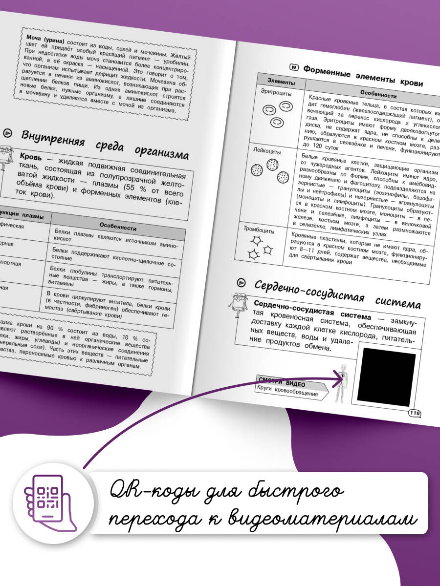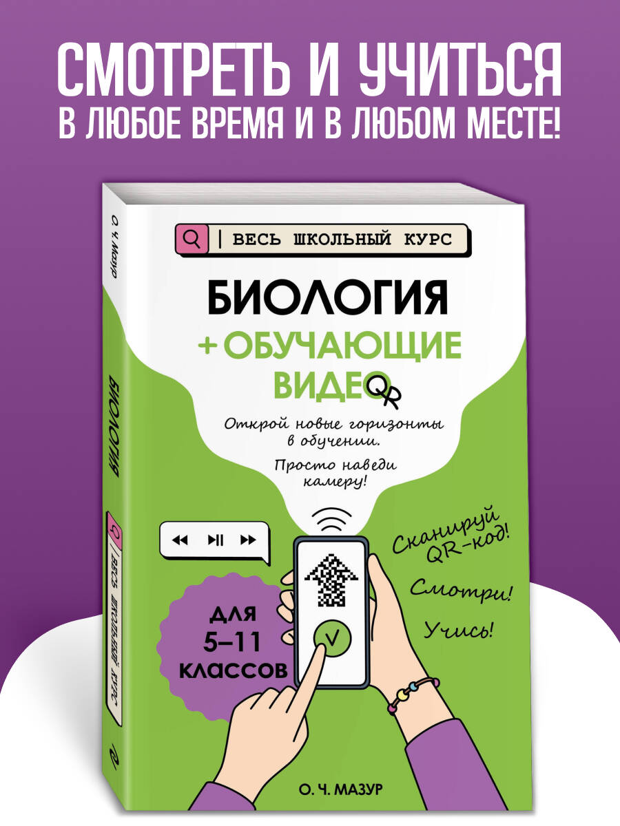 Хочешь подготовиться к экзаменам, но глаза разбегаются от большого объёма информации в учебниках? Решение этой проблемы буквально в одном QR-коде от тебя: просто наводи, сканируй и смотри короткие видеоуроки, в которых преподаватели наглядно объясняют сложные темы! Ёмкая теория в таблицах в комплекте с обучающими анимационными видео поможет выучить предмет, не прибегая к помощи репетиторов. В книге ты найдёшь: • структурированную теорию по всему школьному курсу биологии; • практические задания с ответами и пояснениями; • QR-коды для быстрого перехода к видеоматериалам. В пособии развёрнутый поясняющий материал по темам, особо актуальным для сдачи экзаменов, ОГЭ и ЕГЭ 2026, представлен в формате коротких видеороликов. Такой справочник для учеников 5, 6, 7, 8, 9, 10, 11 классов сделает процесс обучения живым и запоминающимся! Попробуй новый подход к обучению: смотри и учись в любое время и в любом месте! Также книга будет полезна для занятий родителей с детьми.| Издательство | ООО "Издательство "Эксмо" |