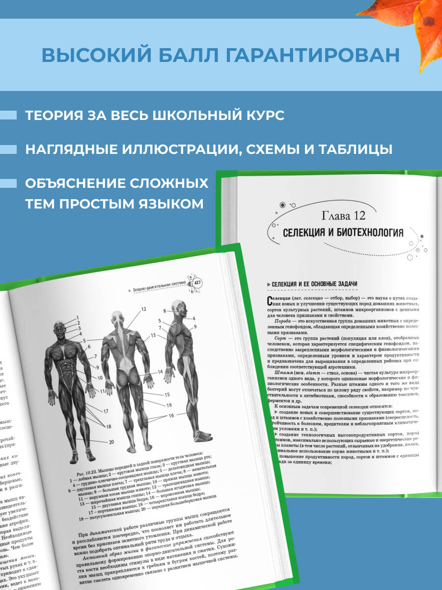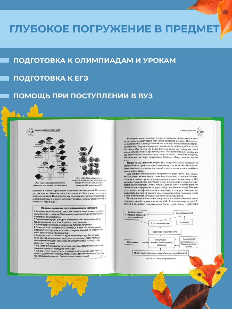 Справочник адресован тем, кто хочет овладеть биологией на углубленном уровне, систематизировать знания и быть готовыми к любым экзаменационным испытаниям. Учебное пособие адресовано ученикам 10-11 классов, учителям и репетиторам. Книга поможет подросткам подготовиться к урокам, ЕГЭ, олимпиадам и ДВИ. В данном справочнике: • все темы школьного курса биологии приведены в полном объеме; • материал излагается последовательно и сопровождается наглядными таблицами, схемами и рисунками; • сложные темы курса хорошо структурированы и написаны доступным языком. Книга поможет в решении задачи получения высоких баллов на экзамене, станет отличным дополнением к учебнику и надежной опорой для тех, кто стремится к глубокому пониманию биологии, систематизации знаний и успешной сдаче ОГЭ и ЕГЭ, в том числе ДВИ.| Издательство | ООО "Издательство "Эксмо" |
