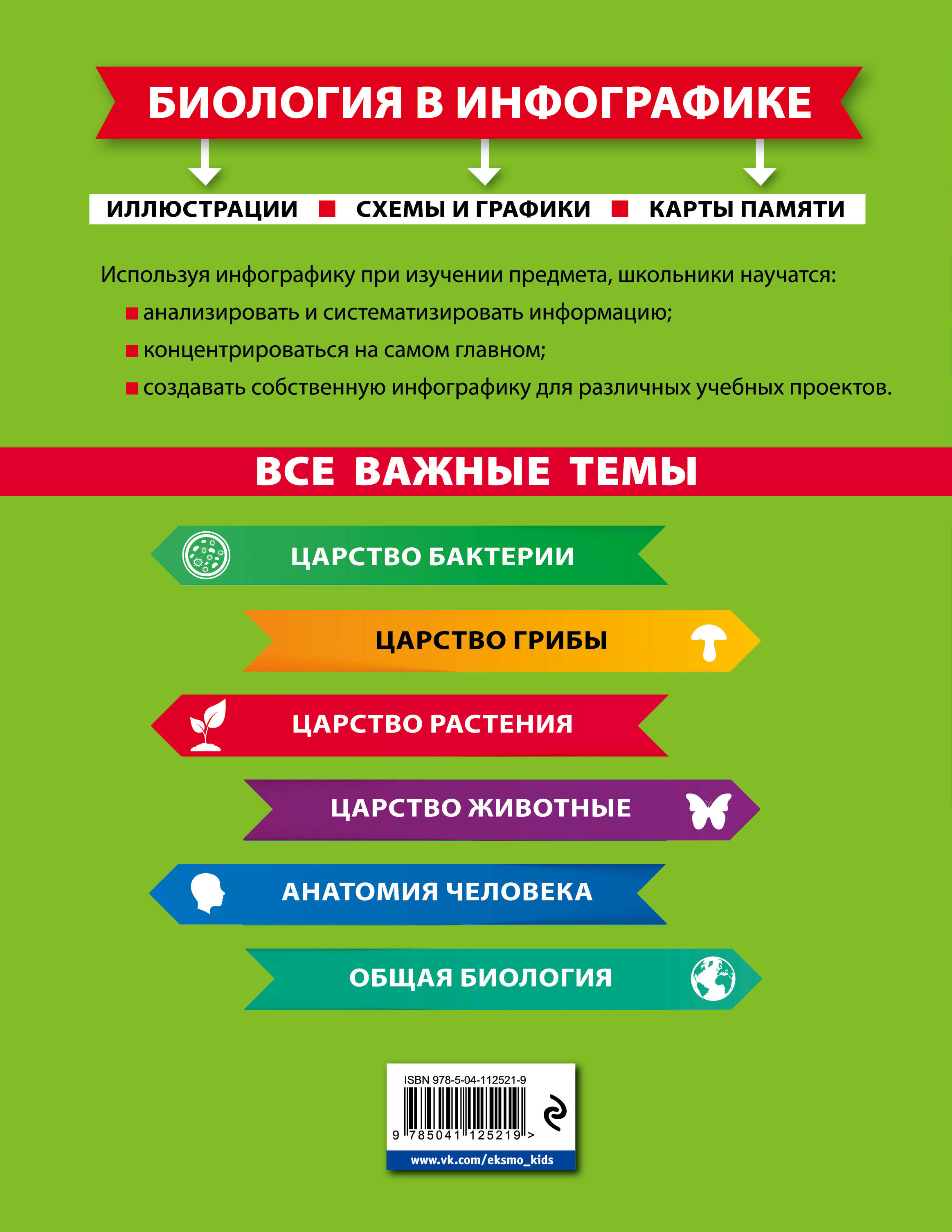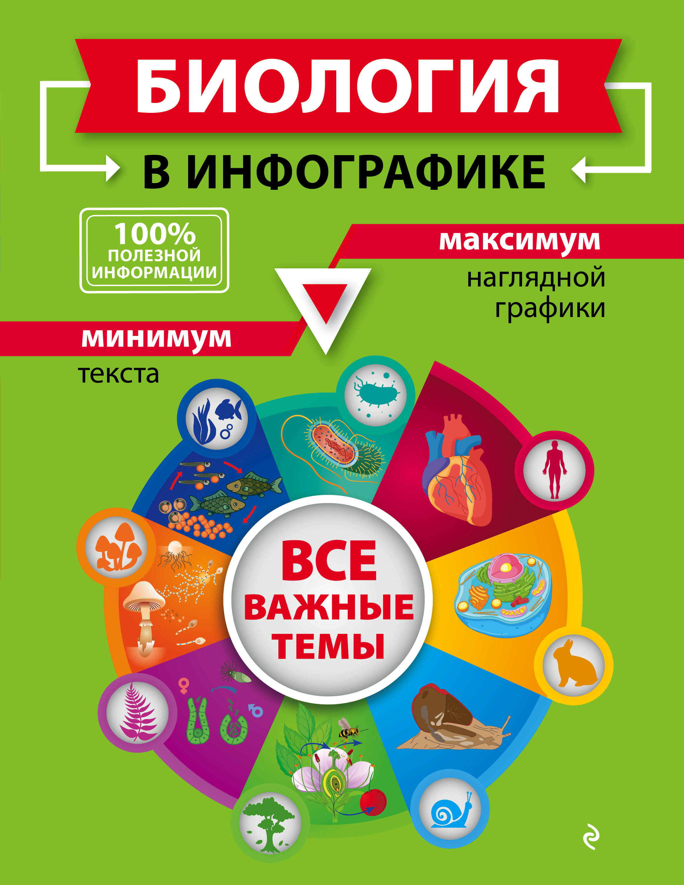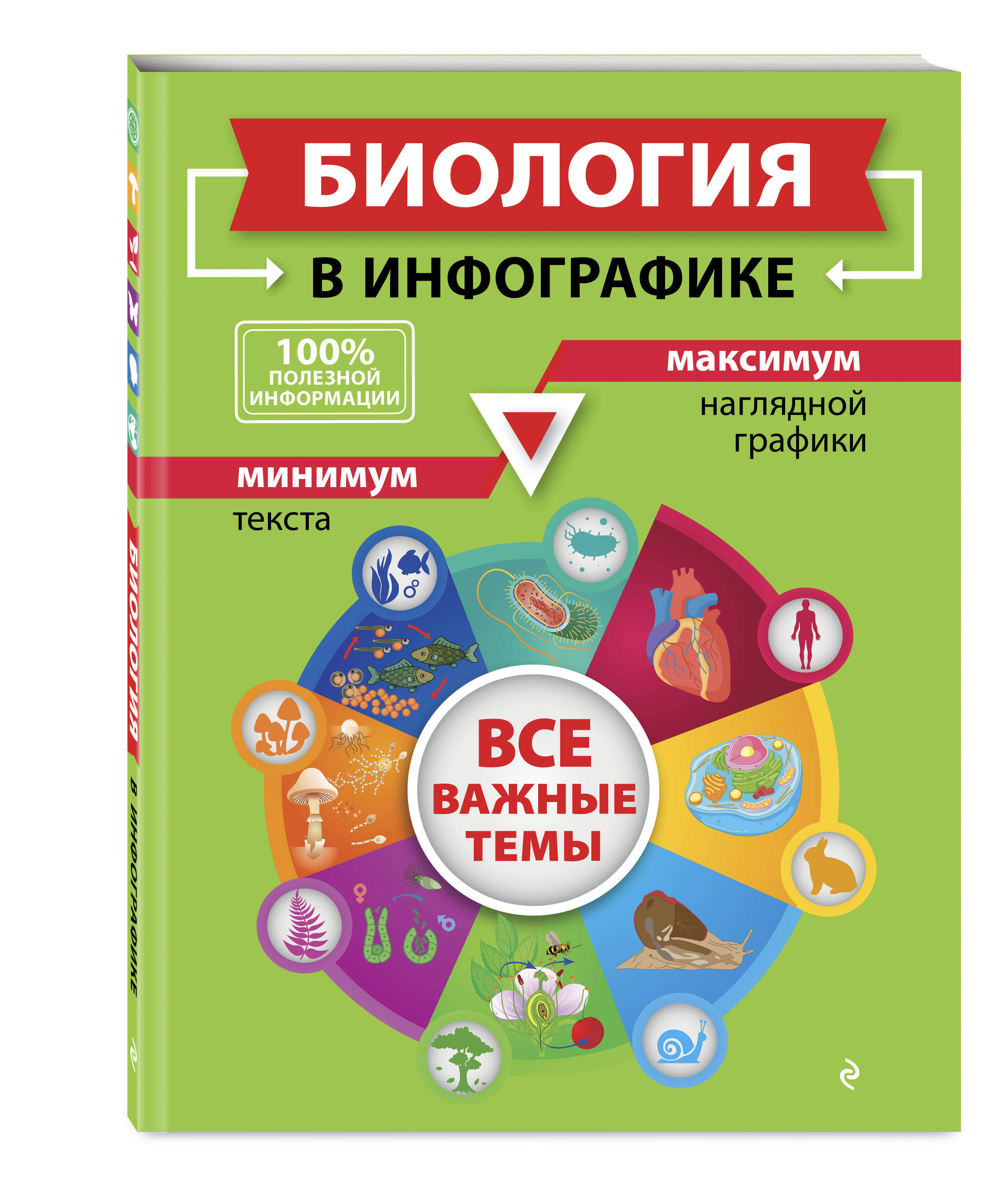 В издании с помощью инфографики - наглядных иллюстраций, схем, графиков, рисунков - представлены краткие теоретические сведения по основным темам школьного курса биологии. Большое количество упорядоченной визуальной информации позволит быстрее и эффективнее усваивать учебный материал, повысит интерес и мотивацию учащихся, даст наиболее полное представление о предмете. Пособие окажет дополнительную помощь школьникам в подготовке к урокам, контрольным работам, экзаменам, будет также полезно учителям и всем, кто интересуется биологией. Современным школьникам намного проще усваивать материал, когда он представлен в визуально упрощённом виде. Учебная информация, изложенная в инфографике, воспринимается мгновенно и даёт возможность найти и запомнить по-настоящему важные детали, сложить их воедино и получить полное представление об изучаемой теме.| Издательство | ООО "Издательство "Эксмо" |