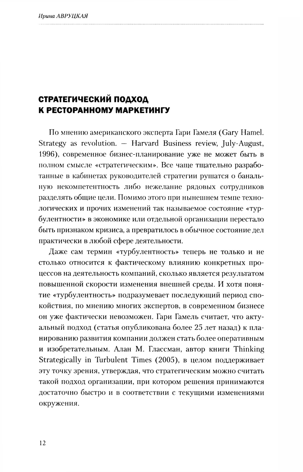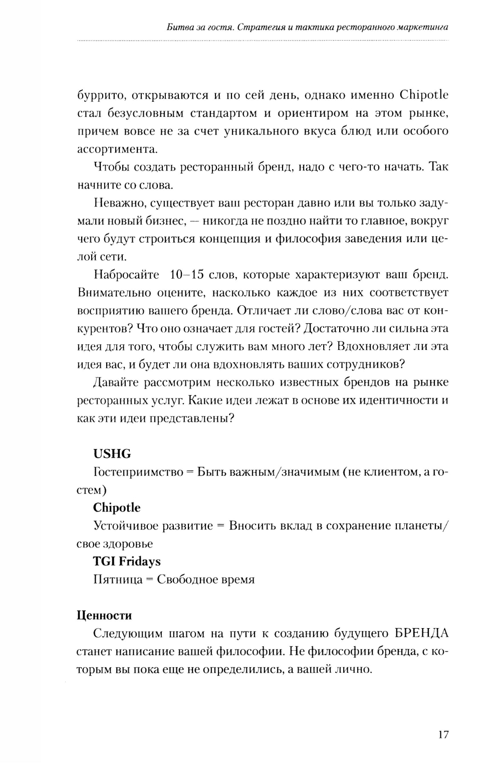 Конкуренция в ресторанном бизнесе с каждым годом становится все ожесточеннее, превращая успех и даже само выживание в настоящее искусство для профессионалов. «Битва за гостя» - книга практика ресторанного маркетинга Ирины Авруцкой - представляет собой исчерпывающее и практичное руководство к действиям. В книге собраны результаты тринадцати лет профессиональной деятельности автора и работы с крупнейшими международными брендами, такими как TGI Fridays, Costa Coffee, Papa John's, a также консалтинговый опыт с сотнями компаний в 82 городах 10 стран мира. Раскрывая все грани ресторанного маркетинга, включая стратегию, создание меню, программы лояльности и работу с отзывами клиентов, эта книга выстраивает их в простую и легко реализуемую на практике систему. Это практическое руководство по построению вашего бренда, достижению узнаваемости вашего заведения и обеспечению лояльности ваших гостей. «Битва за гостя» - это ваш бизнес-план в книжной обложке.