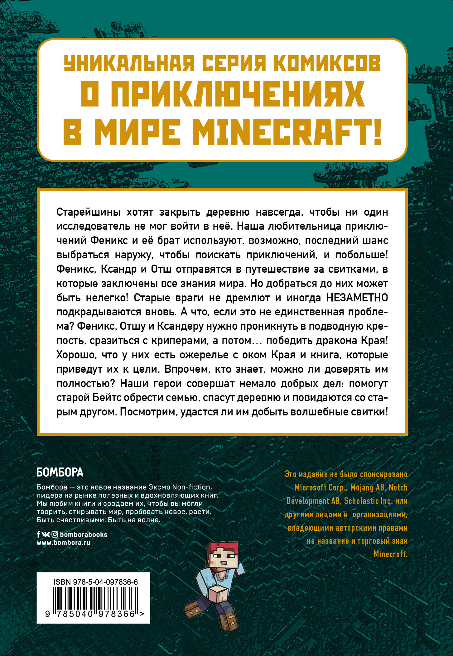 Уникальная серия комиксов о приключениях в Minecraft, самой любимой игре последних лет. Старейшины хотят закрыть деревню навсегда, чтобы ни один исследователь не мог войти в неё. Наша любительница приключений Феникс и её брат используют, возможно, последний шанс выбраться наружу, чтобы поискать приключений, и побольше! Феникс, Ксандр и Отш отправятся в путешествие за свитками, в которые заключены все знания мира. Но добраться до них может быть нелегко! Старые враги не дремлют и иногда НЕЗАМЕТНО подкрадываются вновь. А что, если это не единственная проблема? Феникс, Отшу и Ксандеру нужно проникнуть в подводную крепость, сразиться с криперами, а потом… победить дракона Края! Хорошо, что у них есть ожерелье с оком Края и книга, которые приведут их к цели. Впрочем, кто знает, можно ли доверять им полностью? Наши герои совершат немало добрых дел: помогут старой Бейтс обрести семью, спасут деревню и повидаются со старым другом. Посмотрим, удастся ли им добыть волшебные свитки! Читайте в серии: Книга 1. В поисках золотого яблока Книга 2. Месть зомби-монахов Книги 3. Пророчество ока Края Книга 4. Битва за храм дракона Книга 5. В погоне за Хиробрином Книга 6. Спасти Ксенос| Издательство | ООО "Издательство "Эксмо" |
