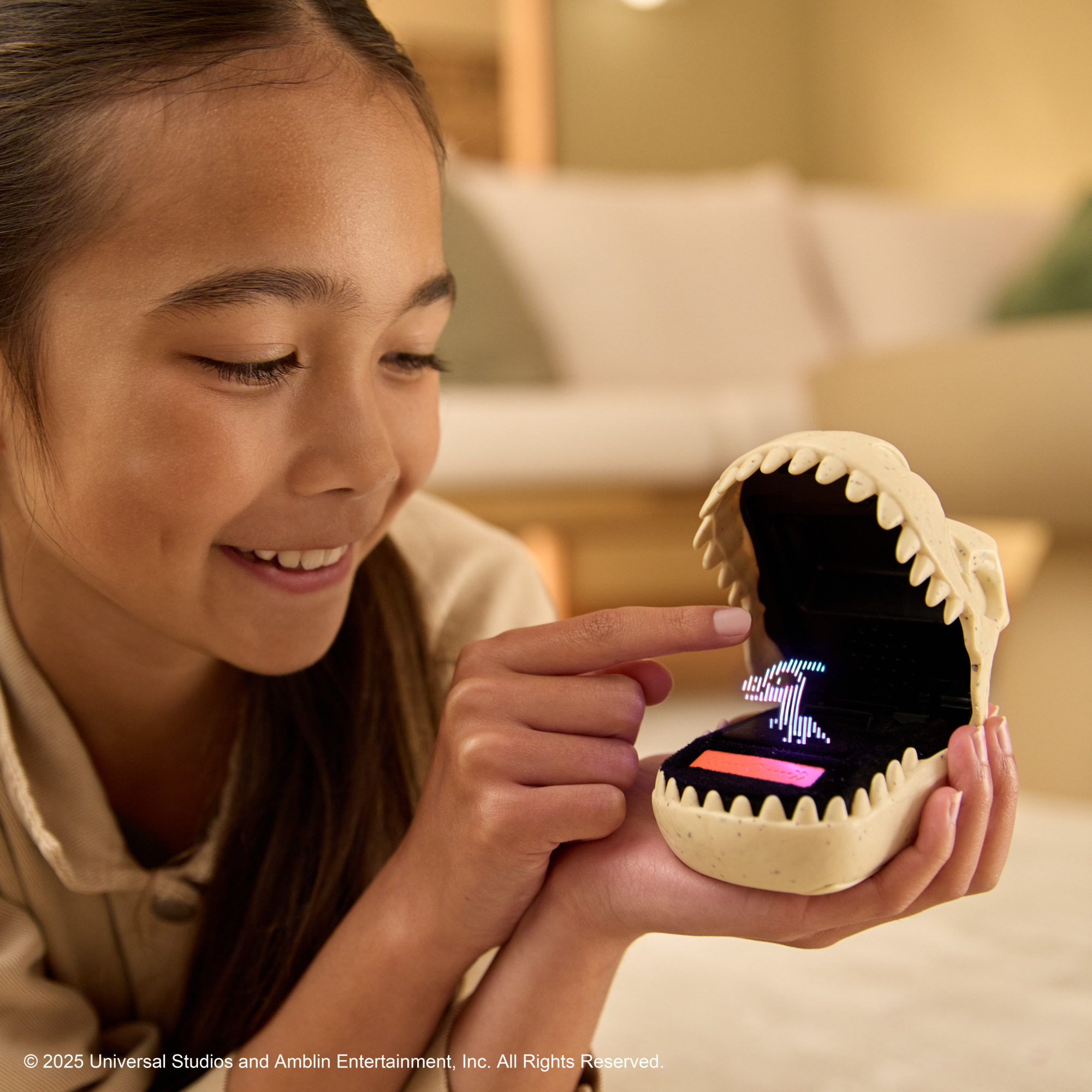 Парк Юрского перида в мире Bitzee! Погрузитесь в доисторические приключения с капсулой в форме черепа тираннозавра. Исследуйте, раскапывая окаменелости, высиживайте яйца и эволюционируйте 25 уникальных динозавров - от милых детёнышей до грозных взрослых особей! Играйте в мини-игры, для тренировки своих динозавров и подготовки их к сражениям. Подключайте две капсулы по беспроводной связи, чтобы сражаться или обмениваться динозаврами с друзьями. Bitzee Мир Юрского периода - это инновационная цифровая игрушка без экрана, объединяющая интерактивную игру, коллекционирование и захватывающие бои. Идеально подойдёт для юных палеонтологов, поклонников динозавров и всех любителей Bitzee!