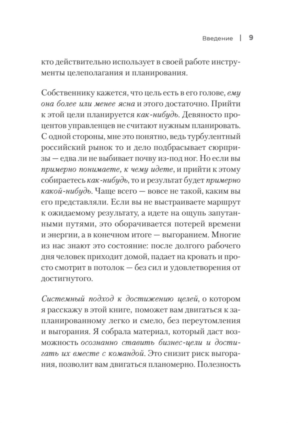 Почему топ-менеджеры все чаще выгорают всего за три года? Что ведет к потере времени, энергии и, как следствие, к профессиональному истощению? Автор книги, успешный предприниматель с 25-летним опытом ведения бизнеса, отвечает на эти вопросы и предлагает решение - системный подход к целеполаганию. Алгоритмы и советы из книги помогут вам четко формулировать цели для себя, компании и команды, вовлекать сотрудников в достижение масштабных целей, правильно делегировать задачи и эффективно планировать время, сохранять энергию на долгом пути к успеху. Каждый инструмент и подход, предложенный автором, был протестирован на практике. В книге вы найдете: вопросы для рефлексии, чтобы глубже понять свои цели и переосмыслить управленческую практику, а также советы для максимальной продуктивности. Полезные лайфхаки и инсайты можно сразу применить в работе. Издание рекомендовано собственникам и управленцам компаний, а также всем, кто интересуется темой профессионального выгорания.