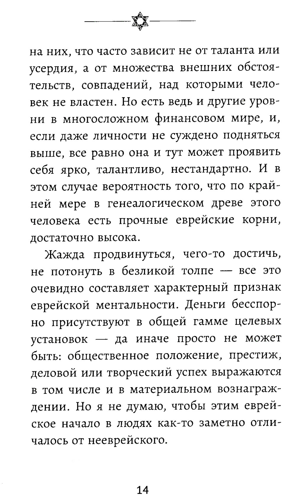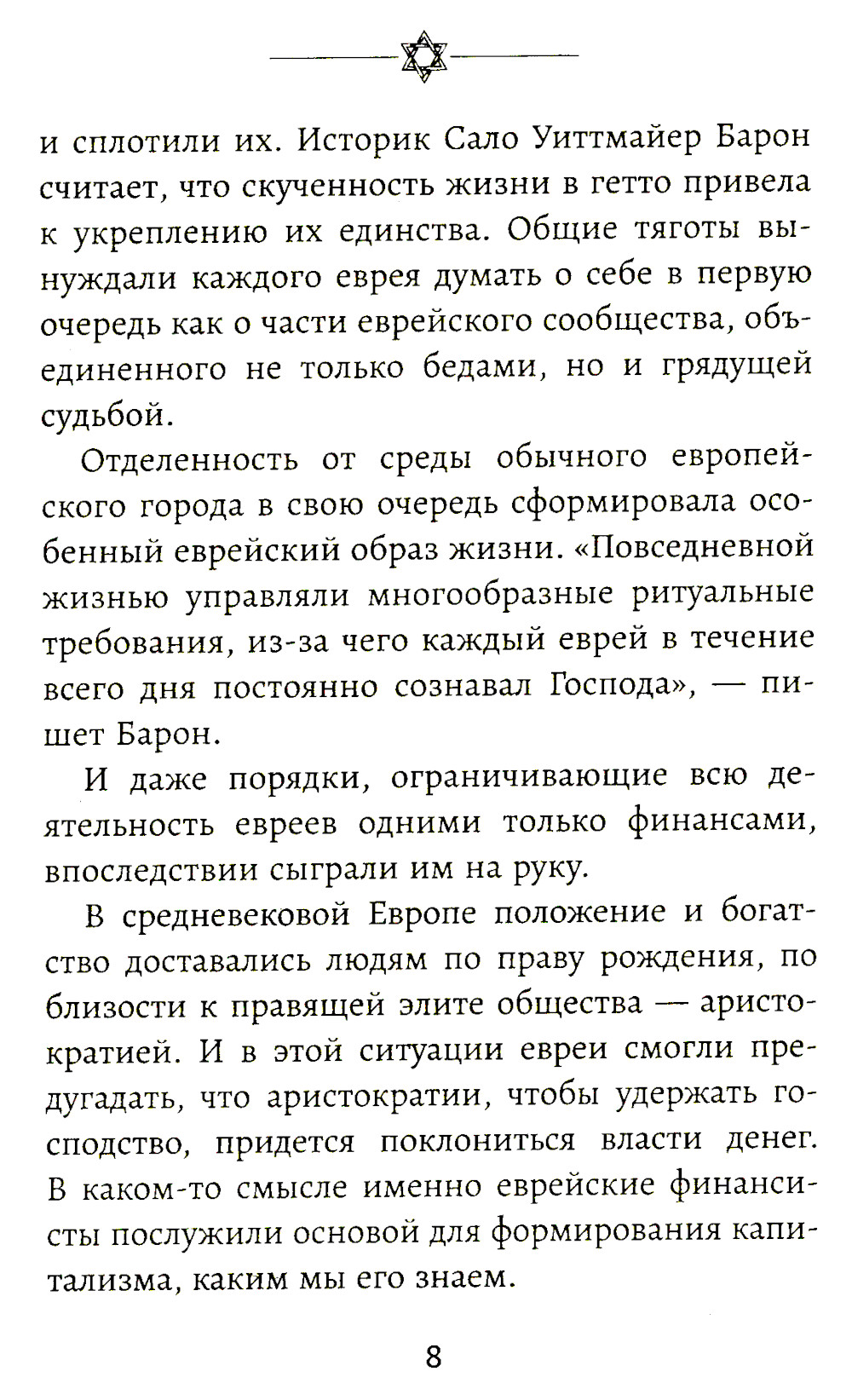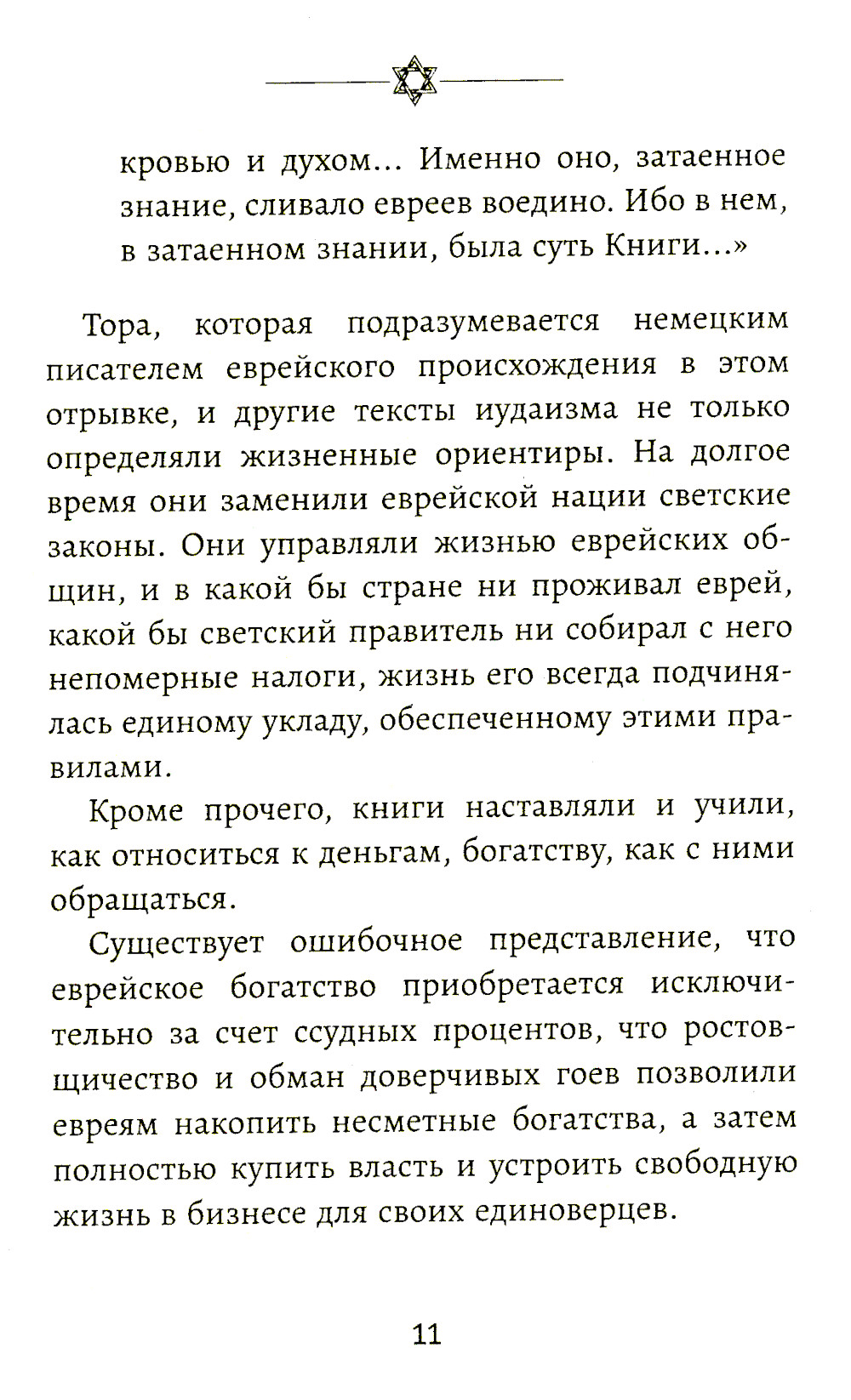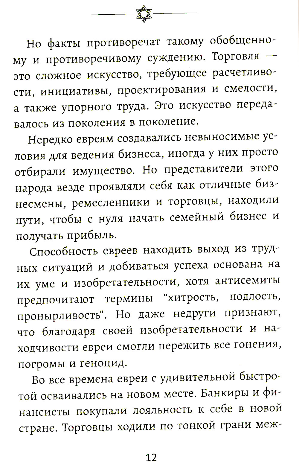 Когда речь заходит о деньгах и тех, кто ими управляет, на ум сразу приходит еврейская нация. Ротшильды, Гейтс, Цукерберг - эти фамилии можно встретить в рейтинге богатейших людей планеты, составленном всем известным журналом "Forbes".Факт, что среди иудеев большой процент умных и богатых людей, - почти аксиома. Что служит причиной этого феномена: высокий от природы интеллект, врожденная смекалка, жажда наживы, семейные ценности, Тора или что-то другое? Об этом до сих пор спорят культурологи. Бесспорно одно: у представителей еврейской нации можно многому поучиться, особенно формированию личных финансов, достижению материальной независимости, ведению бизнеса, управлению финансовыми потоками. Золотые правила, представленные в книге, составляют систему ценностей еврейского народа, позволили ему выделиться, а его представителям снискать славу самых богатых и влиятельных людей планеты. Эти качества могут пригодиться в жизни любого человека, желающего стать успешным и финансово независимым.