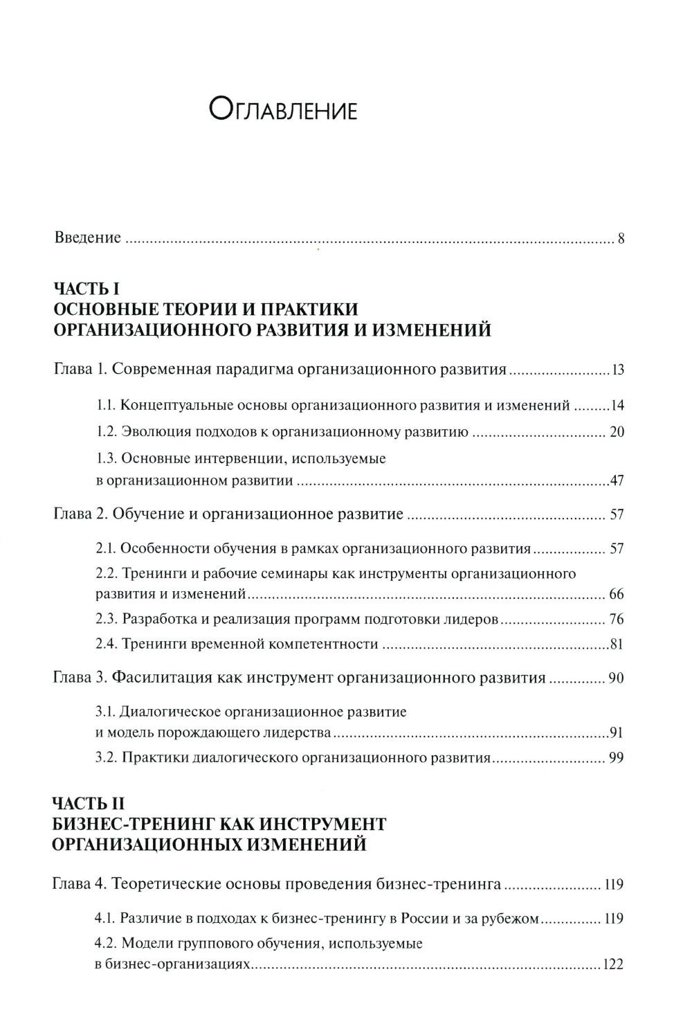 В учебном пособии систематизированы основные теории и практики организационного развития, представлена их эволюция, рассмотрены различные подходы к классификации организационных интервенций. Подробно разбирается методологический подход, лежащий в основе технологии фасилитации больших групп. Общие принципы, техники и подходы, описанные в пособии, включая особенности стратегического проектирования процессов, дизайна мероприятий и фасилитации диалога, являются методической базой для консультантов и практиков диалогического организационного развития. Также подробно рассматривается методология разработки и проведения бизнес-тренинга как инструмента организационных изменений. В отдельной главе иллюстрируется, как представленная методология реализуется в конкретной программе бизнес-тренинга. Для студентов факультетов психологии, социологии, менеджмента и других гуманитарных специальностей.| Издательство | ИД Высшей школы экономики |