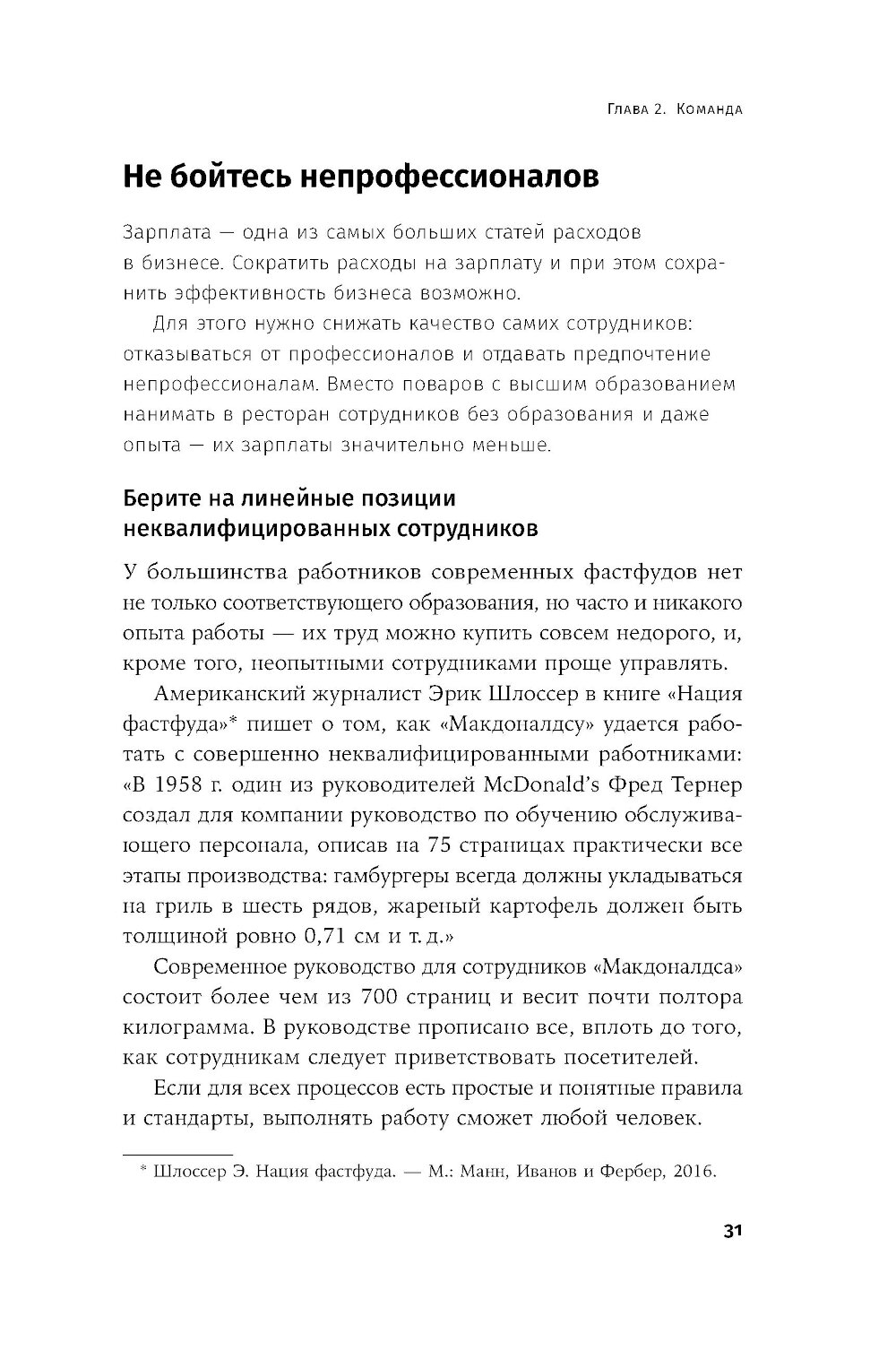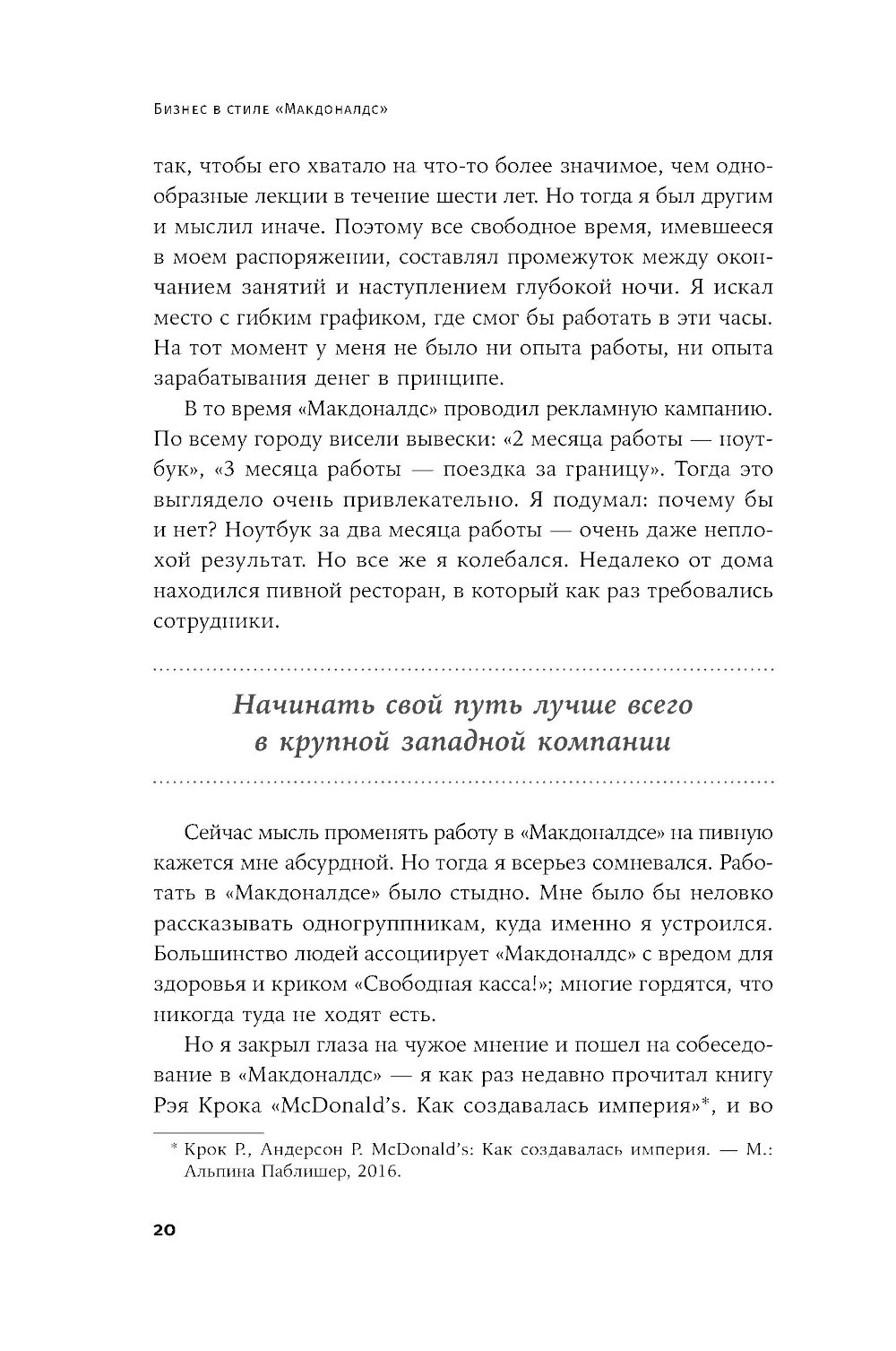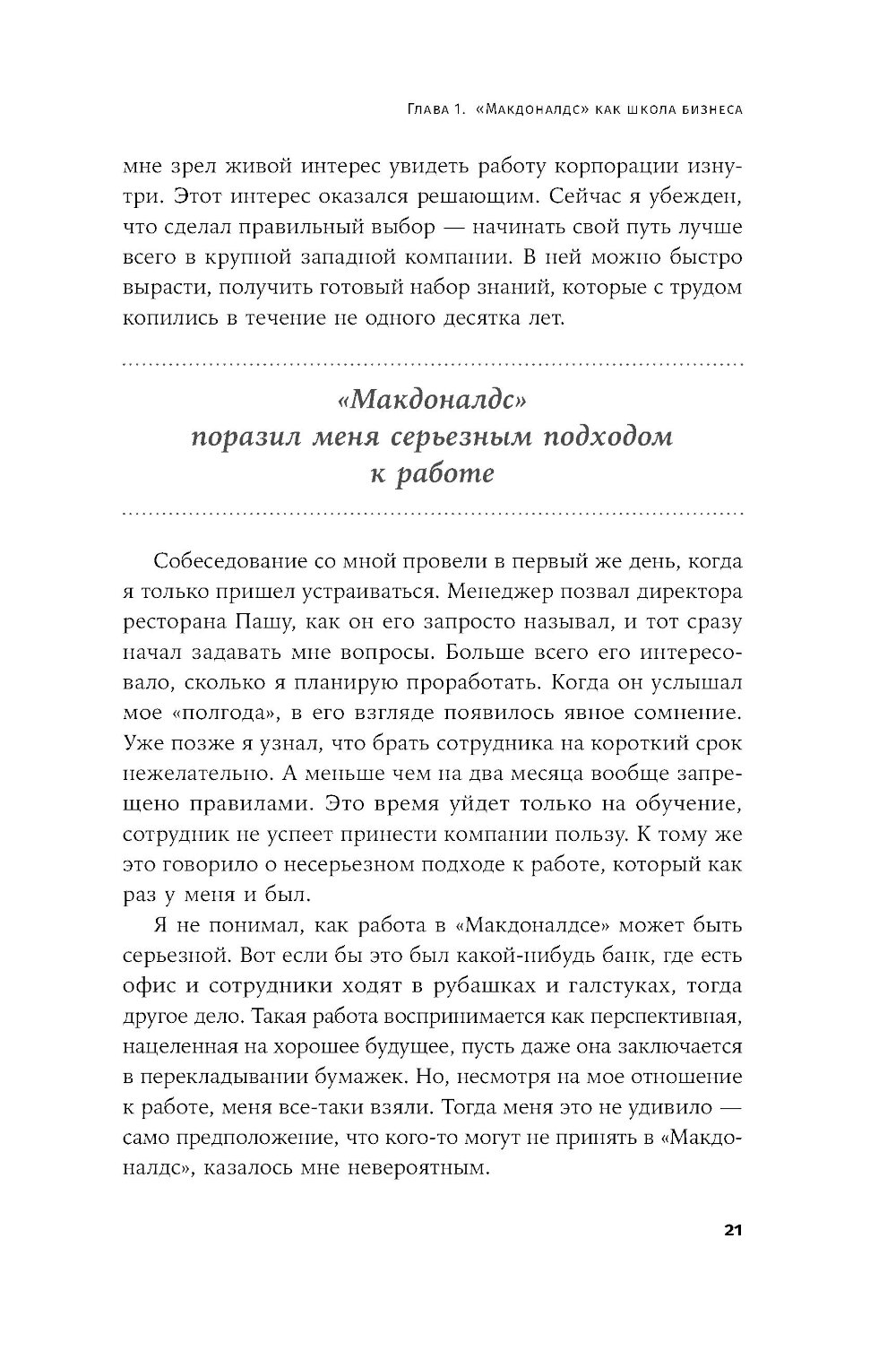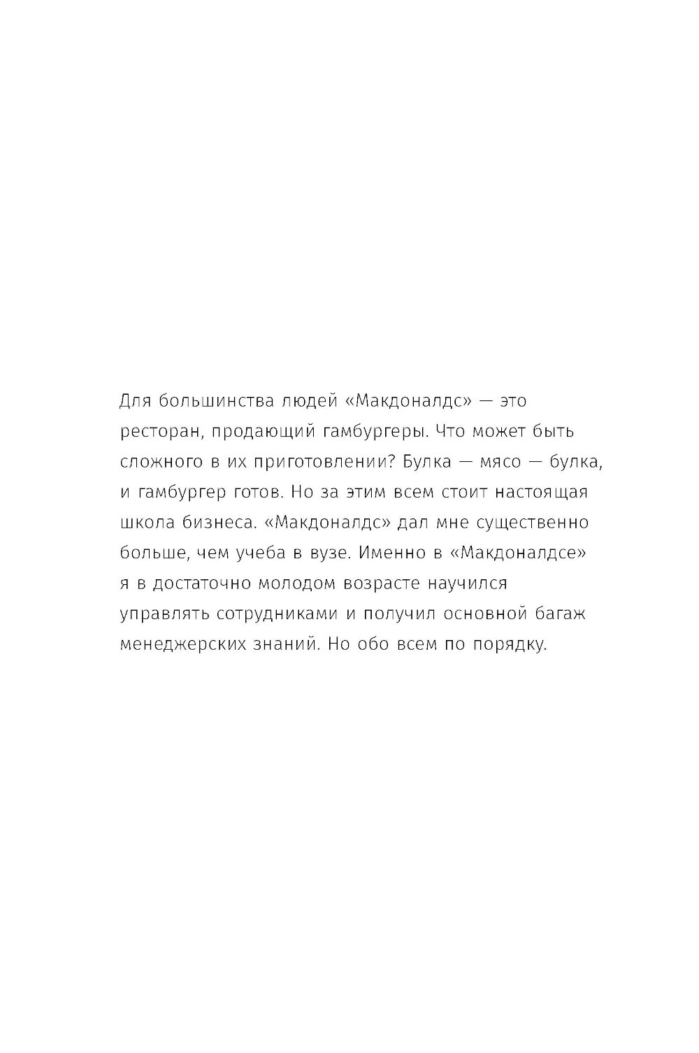 «Макдоналдс» - отличная школа менеджмента, продуманные и выстроенные до мелочей производственные процессы. Благодаря четким стандартам компания добивается их идеальной синхронизации. Можно ли перенести этот опыт и практики в свою компанию и создать бизнес-фабрику в стиле «Макдоналдс»? Опираясь на многолетний управленческий опыт работы в «Макдоналдс», «Додо Пицце», «Вилгуд», предприниматель Марсель Зиганшин утверждает: в какой бы сфере вы ни работали, свой «Макдоналдс» можно построить везде. Его книга состоит из трех основных частей: «Команда», «Эффективность и управление» и «Клиент». Именно эти три составляющие необходимо держать под контролем, чтобы бизнес работал без сбоев, как слаженный механизм, и автор подробно на примерах из практики рассказывает, как это сделать. Книга будет полезна как предпринимателям, так и любому менеджеру, работающему над оптимизацией процессов.| Издательство | Альпина Паблишер |