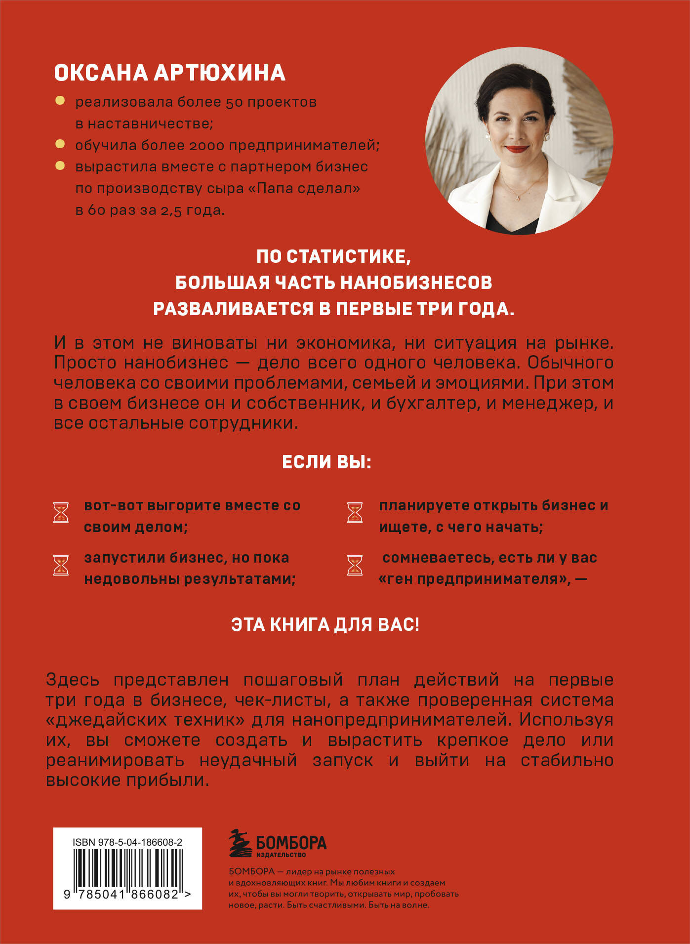 По статистике, большая часть нанобизнесов разваливается в первые три года. И в этом не виновата ни экономика, ни ситуация на рынке. Просто нанобизнес - дело всего одного человека. Обычного человека, со своими проблемами, семьей, эмоциями. И он в своем бизнесе при этом и собственник, и бухгалтер, и менеджер, и все остальные сотрудники. Если вы: * сочетаете в себе все ипостаси и вот-вот выгорите вместе со своим делом; * планируете открыть бизнес или уже запустили, но пока не довольны результатами; * закрыли ИП, разочаровались и сомневаетесь, есть ли у вас «ген предпринимателя», - эта книга для вас. Ее автор вытащила из кризиса не один нанобизнес без «волшебных таблеток» и «ритуалов на удачу». В книге она дает пошаговый план действий на первые три года в бизнесе, чек-листы, а также проверенную систему «джедайских техник» для нанопредпринимателя. Используя их, вы сможете создать и вырастить крепкое дело или реанимировать неудачный запуск и выйти на стабильно высокие прибыли.| Издательство | ООО "Издательство "Эксмо" |