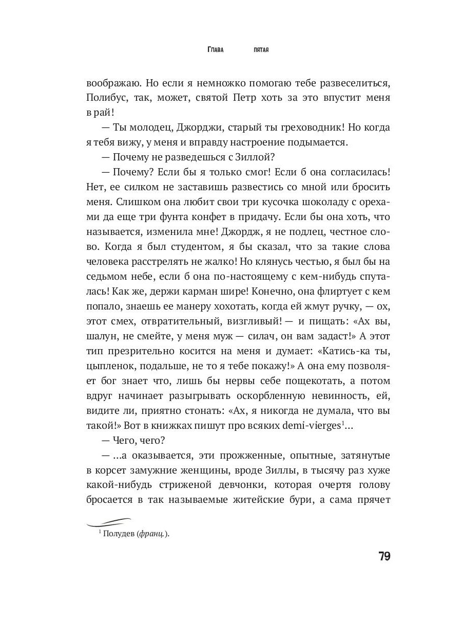 «Бэббит» - сатирический роман американского писателя, лауреата Нобелевской премии, мастера и знатока психологии «среднего американца» Льюиса Синклера. С первой публикации романа «Бэббит» фамилия главного героя стала в английском языке именем нарицательным. Романтический герой уже не был рыцарем или ковбоем, летчиком или храбрым прокурором - им стал Великий Коммерсант, умеющий анализировать, герой, который посвятил себя одной, но космической цели - продаже, не продаже чего-нибудь определенного кому-нибудь определенному, а Продаже с большой буквы. В 2015 году роман включен в список «100 лучших англоязычных романов» по версии «Гардиан» как одно из выдающихся произведений американского «критического реализма».| Издательство | Т8 RUGRAM |