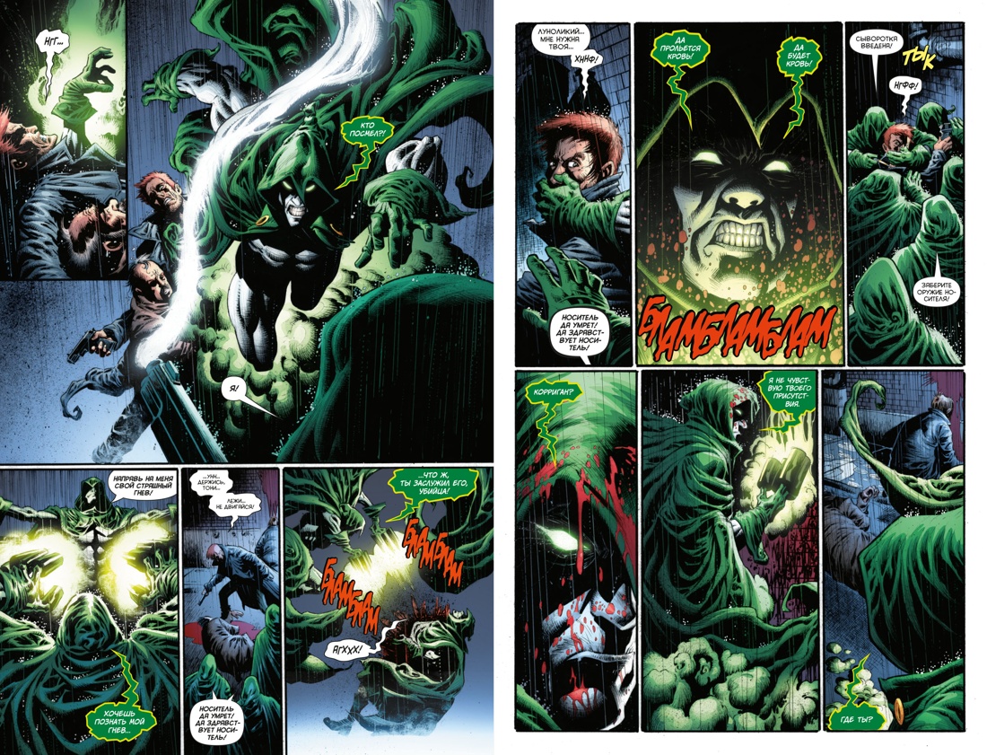 Детективы полиции Готэма Корриган и Мартинес попадают в засаду на одной из темных готэмских улиц, куда они прибыли по сообщению дежурного о стрельбе. Там напарники находят совсем свежий труп, а сами становятся жертвами нападения таинственных фигур в зеленых балахонах. «Носитель да умрет! Да здравствует носитель!» Эти слова служители загадочного культа повторяют, убивая Тони Мартинеса и забирая с собой Джеймса Корригана - носителя Спектра, духа божественного возмездия. И чтобы помочь духу вернуть его носителя, Бэтмен должен задействовать свой талант величайшего детектива в мире.| Издательство | Азбука |