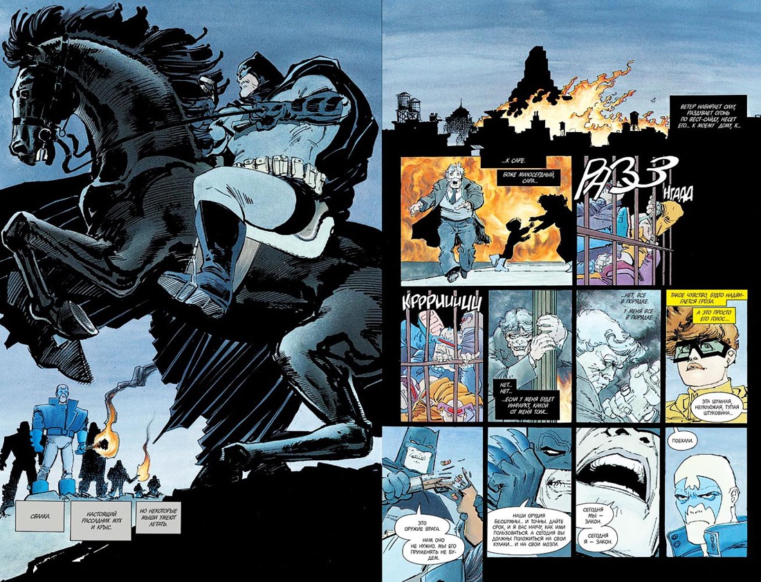 Этот шедевр современного графического романа, на страницах которого оживают мир тьмы и человек, в чьей душе царит тьма еще более густая. Писатель и художник Фрэнк Миллер совместно с контуровщиком Клаусом Янсеном и колористкой Линн Варли заново, с чистого листа создает легенду о Бэтмене в своей саге о городе Готэме, который в ближайшем будущем, спустя десять лет после того, как Бэтмен удалился от дел, пришел в полный упадок. На улицах пышным цветом расцвела преступность, а того, кто был Бэтменом, по-прежнему терзают воспоминания о гибели родителей. Гражданское общество рушится на глазах, и тогда Брюс Уэйн, так долго подавлявший в себе порыв выйти на защиту мирных жителей, сбрасывает наконец оковы, в которые сам себя заковал. Темный Рыцарь возвращается в ослепительном ореоле ярости, он противостоит совершенно новому поколению преступников и не уступает им в жестокости. Вскоре к нему присоединяется Робин нового поколения - девочка по имени Кэрри Келли, которая доказывает, что незаменима точно так же, как и ее предшественники. Однако сумеют ли Бэтмен и Робин преодолеть опасности, которые уготовили для них самые смертельные враги после нескольких лет изоляции от общества, превратившей их в форменных психопатов? А главное - останется ли хоть кто-нибудь в живых после необъявленной войны, которая вот-вот разразится между сверхдержавами - как и после стычки между теми, кто когда-то был величайшими героями на свете? С момента первой публикации графического романа «Бэтмен. Возвращение Темного Рыцаря» прошло уже пятнадцать лет, однако он остается бесспорной классикой и входит в канон мира комиксов.| Издательство | Азбука |