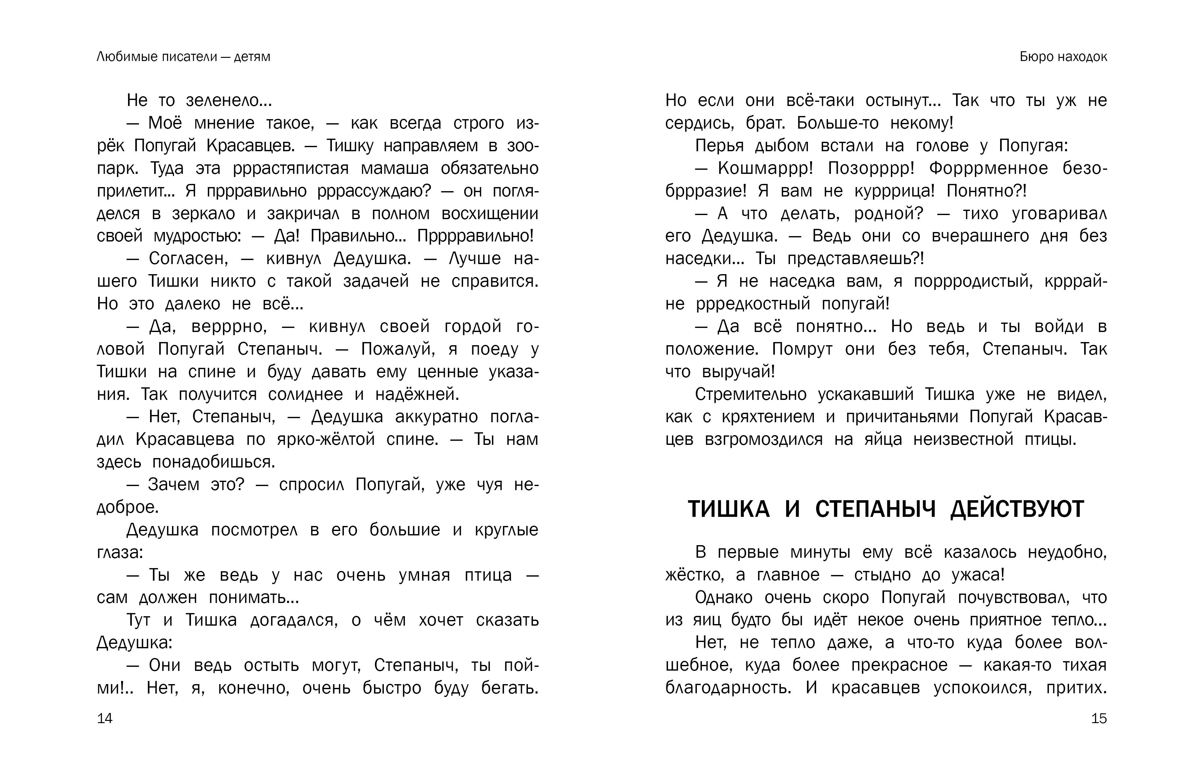 Добро пожаловать в самое необычное в мире Бюро находок! Ведь здесь работает не только Иван Рудаков, или Дедушка, как его все привыкли называть, но и животные: строгий пёс Тишка, а также обладающий невероятной смекалкой попугай Красавцев. Вместе они не просто сохраняют в целости и сохранности потерянные вещи, но ещё ведут опасные и очень увлекательные расследования! А придумал эти истории детский писатель Сергей Иванов. Вас ждут весёлые герои, отчаянные злодеи и интереснейшие приключения!| Издательство | Издательство "АСТ" |