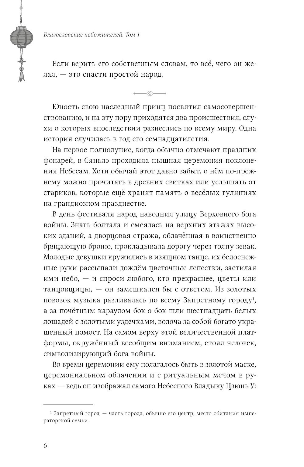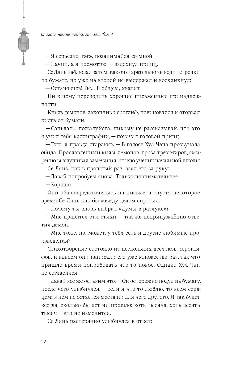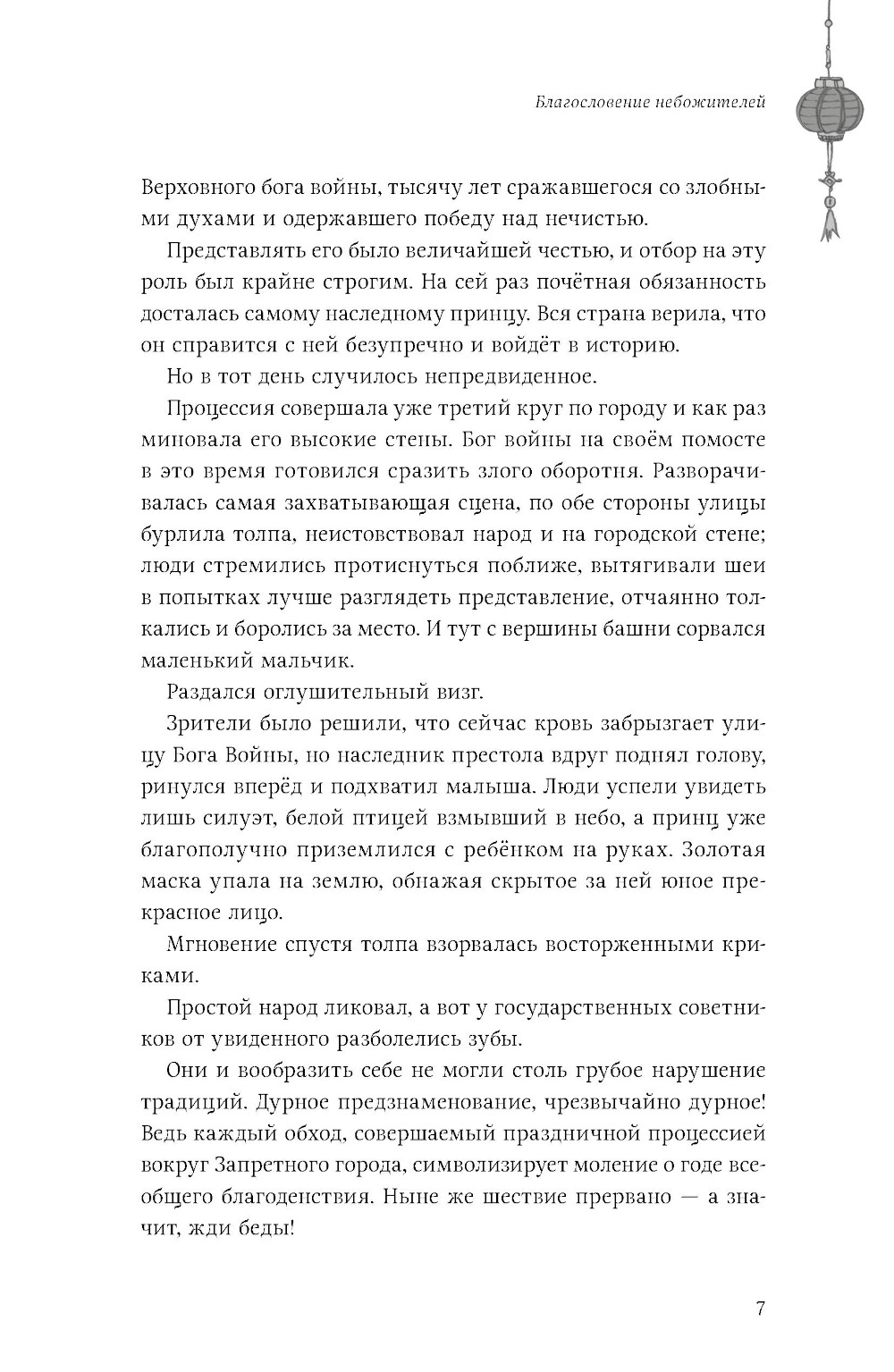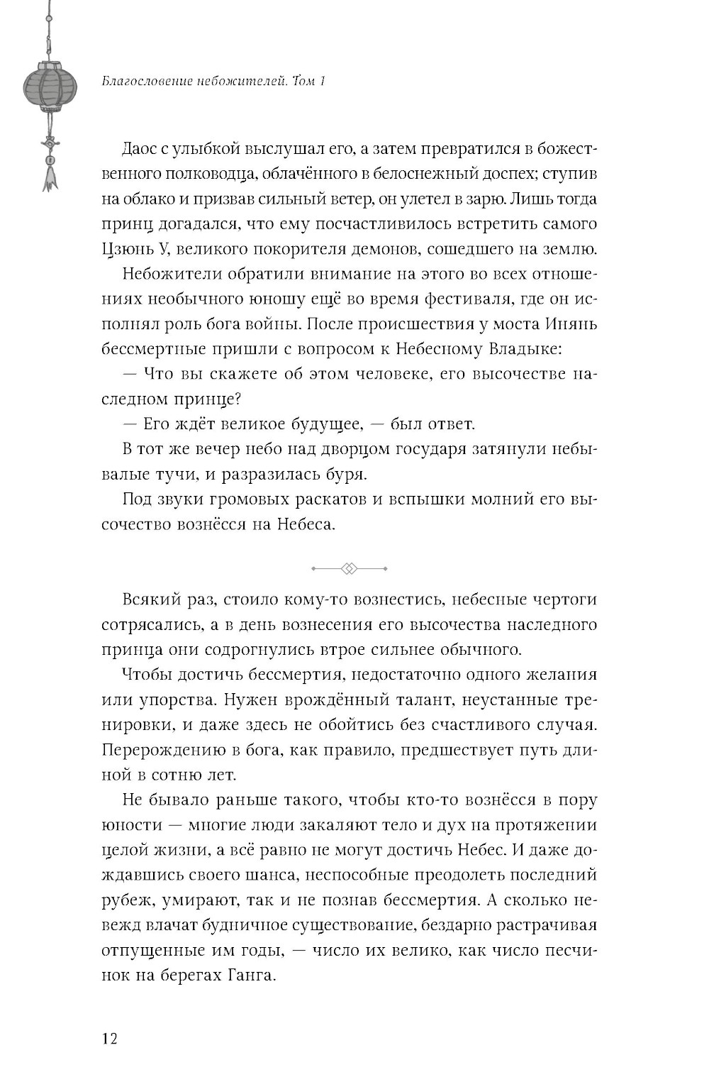 В незапамятные времена Се Лянь был наследным принцем государства Сяньлэ. Судьба одарила его всем: прекрасным ликом, чистыми помыслами и бесконечной любовью своих подданных. И если уж кому-то было предначертано стать божеством, то именно его высочеству. Однако удержаться на Небесах оказалось для него не так просто. Се Лянь возносился дважды и дважды был изгнан на землю. И вот спустя восемьсот лет скитаний его высочество вновь возвращается в небесные чертоги. Получив первое задание в роли божества, он сталкивается с таинственным и невероятно могущественным демоном, который, как оказалось, уже давно положил глаз на наследного принца... Беды преследуют Се Ляня одна за другой: вот он ненароком устроил поджог, а вот столкнулся с призраками прошлого, о которых предпочёл бы забыть... Восемьсот лет назад он был любимцем толпы, а матушка, отец и советник возлагали на него большие надежды. Слава о его подвигах стремительно достигла Небес, и в год своего семнадцатилетия Се Лянь вознёсся. Однако радость была скоротечна: в государстве Сяньлэ настали тяжёлые времена. Видя страдания своего народа, принц не в силах остаться в стороне. Но может ли бог выбирать чью-то сторону? Близится Праздник середины осени, а вместе с ним - роскошный пир и Состязание фонарей в небесных чертогах. Отправляясь на торжество, Се Лянь не подозревает, что окажется в центре внимания. По возвращении в мир смертных он принимается за работу, ведь теперь нужно прокормить сразу три лишних рта! К несчастью, на задании, которое получил принц, он вновь сталкивается с озлобленным духом младенца, однако Хуа Чэн успевает прийти на выручку. После всей неразберихи герои решают отдохнуть - но не тут-то было! На пороге храма Водяных Каштанов возникает Ши Цинсюань в сопровождении Мин И. Оказывается, Повелителя Ветра уже довольно давно преследует одна тварь: божок-пустозвон. Се Лянь соглашается помочь и расправиться с ним, и тут дело принимает совсем дурной оборот... Раз в сотню лет разгорается огонь в Медной Печи, и тысячи демонов откликаются на её зов. Они спешат к горе Тунлу - и каждый надеется выжить в смертельной схватке за право стать новым князем демонов. Предотвратить надвигающуюся угрозу по силам лишь небожителям. Но в столице бессмертных царит хаос: пленённая нечисть вырвалась на свободу, а боги войны заняты своими делами. Чтобы не допустить рождения очередного «непревзойдённого», Се Лянь отправляется к вулкану в сопровождении Хуа Чэна, вынужденного скрывать свой истинный облик под личиной маленького мальчика...| Издательство | Эксмо |