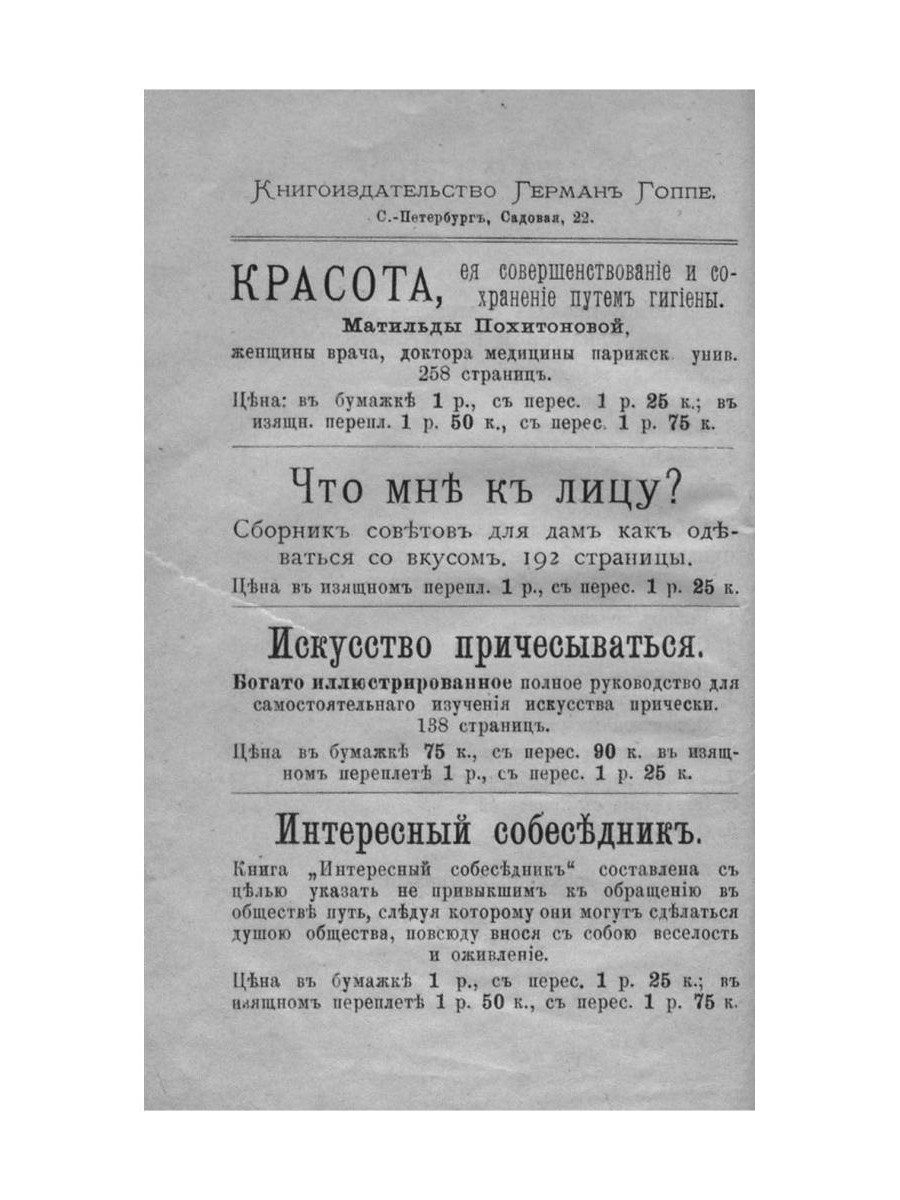 Аннотация: Благовоспитанная женщина, или Умение держать себя с тактом дома и в обществе (репринтное изд.)