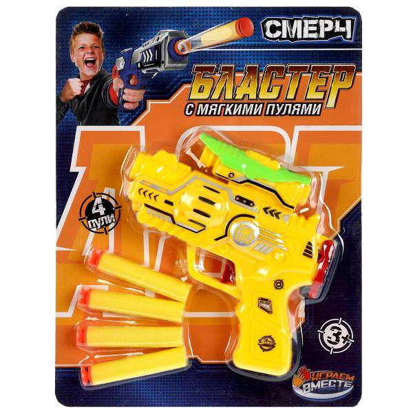 Бластер мягкие пули, блист.19,5*25,6*4см ИГРАЕМ ВМЕСТЕ в кор.2*72шт