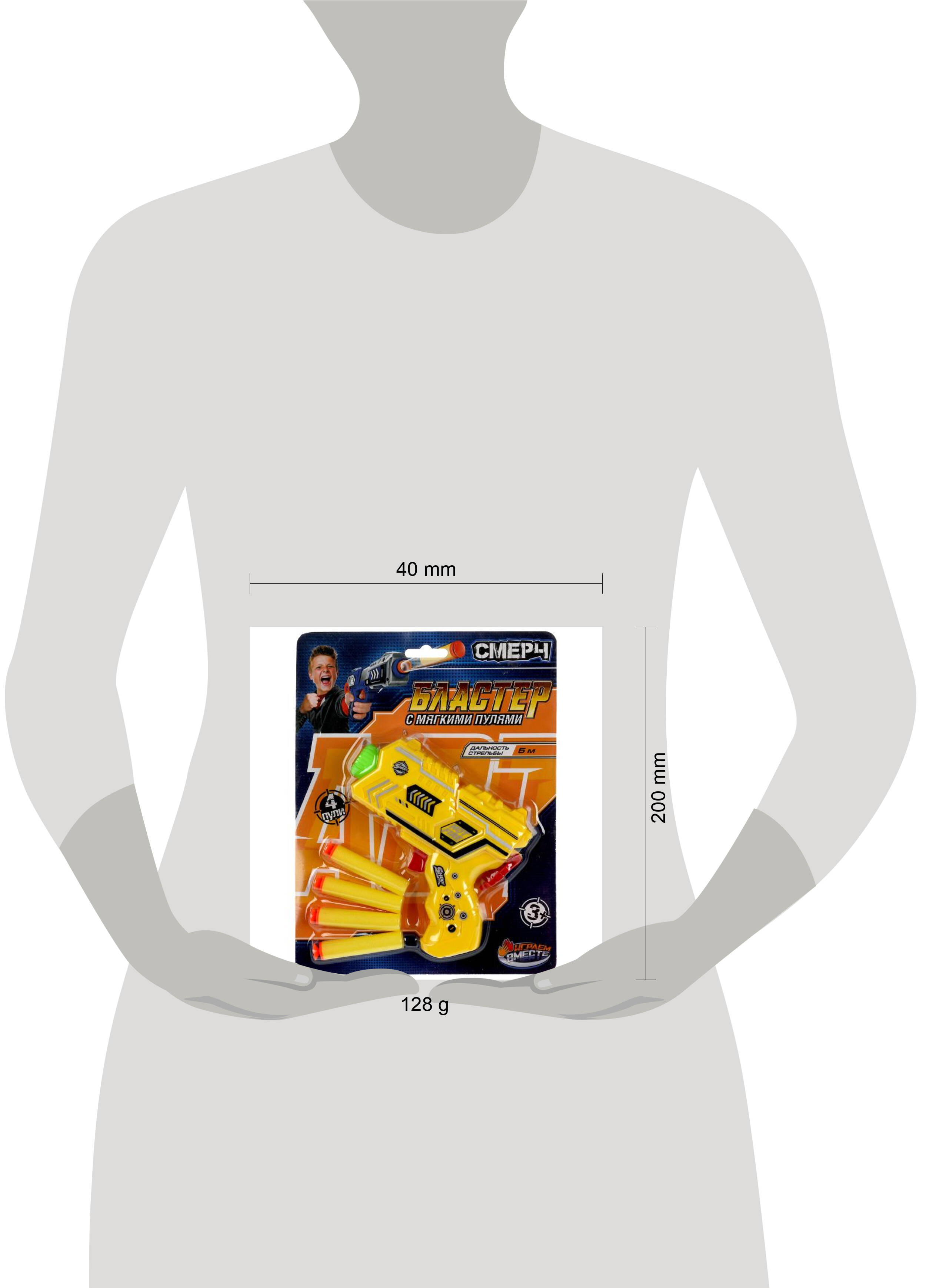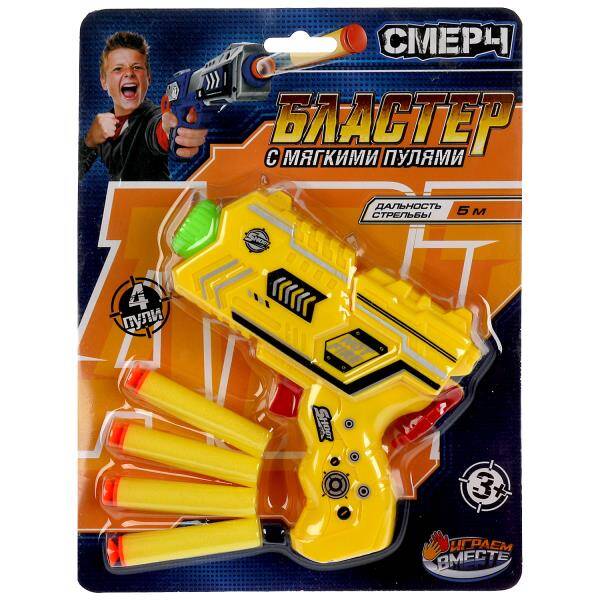Бластер мягкие пули, блист.20*26*4см ИГРАЕМ ВМЕСТЕ в кор.2*72шт