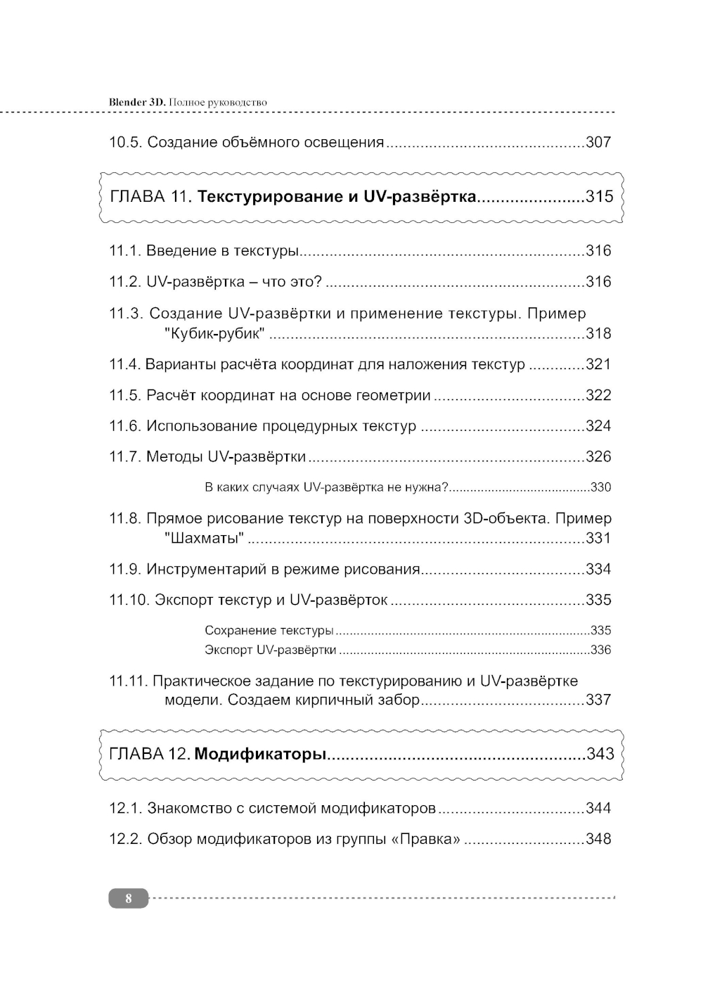 Книга станет отличным помощником для комфортного вхождения в мир 3D-моделирования с помощью бесплатного и многофункционального редактора Blender. Она предназначена как для абсолютных новичков, так и для пользователей, уже имеющих определённый опыт в 3D-графике. Материал будет подаваться от простого к сложному: начнём с изучения интерфейса программы, научимся ориентироваться в рабочих пространствах, инструментах и меню. Далее создадим первые 3D-модели, изучим различные модификаторы и техники редактирования (которые позволят преображать наши модели и придавать им желаемую форму), а также научимся работать с материалами, текстурами (чтобы объекты выглядели реалистичными), освещением и рендерингом. Отдельное внимание уделим продвинутым возможностям Blender'а: научимся создавать 3D-объекты различной сложности (в том числе персонажей и локации), рассмотрим основы визуализации (что позволит вам увидеть свои модели в движении и придать им реалистичный вид), расскажем, как анимировать наши модели и создавать видеоролики из этих анимаций! Особенностью этой книги является её практическая направленность - каждая глава содержит множество наглядных примеров и пошаговых инструкций, которые помогут вам закрепить полученные знания на практике. Доступный язык изложения, подробные иллюстрации и акцент на практических упражнениях помогут сделать процесс изучения Blender'а максимально эффективным и увлекательным.| Издательство | Наука и техника |