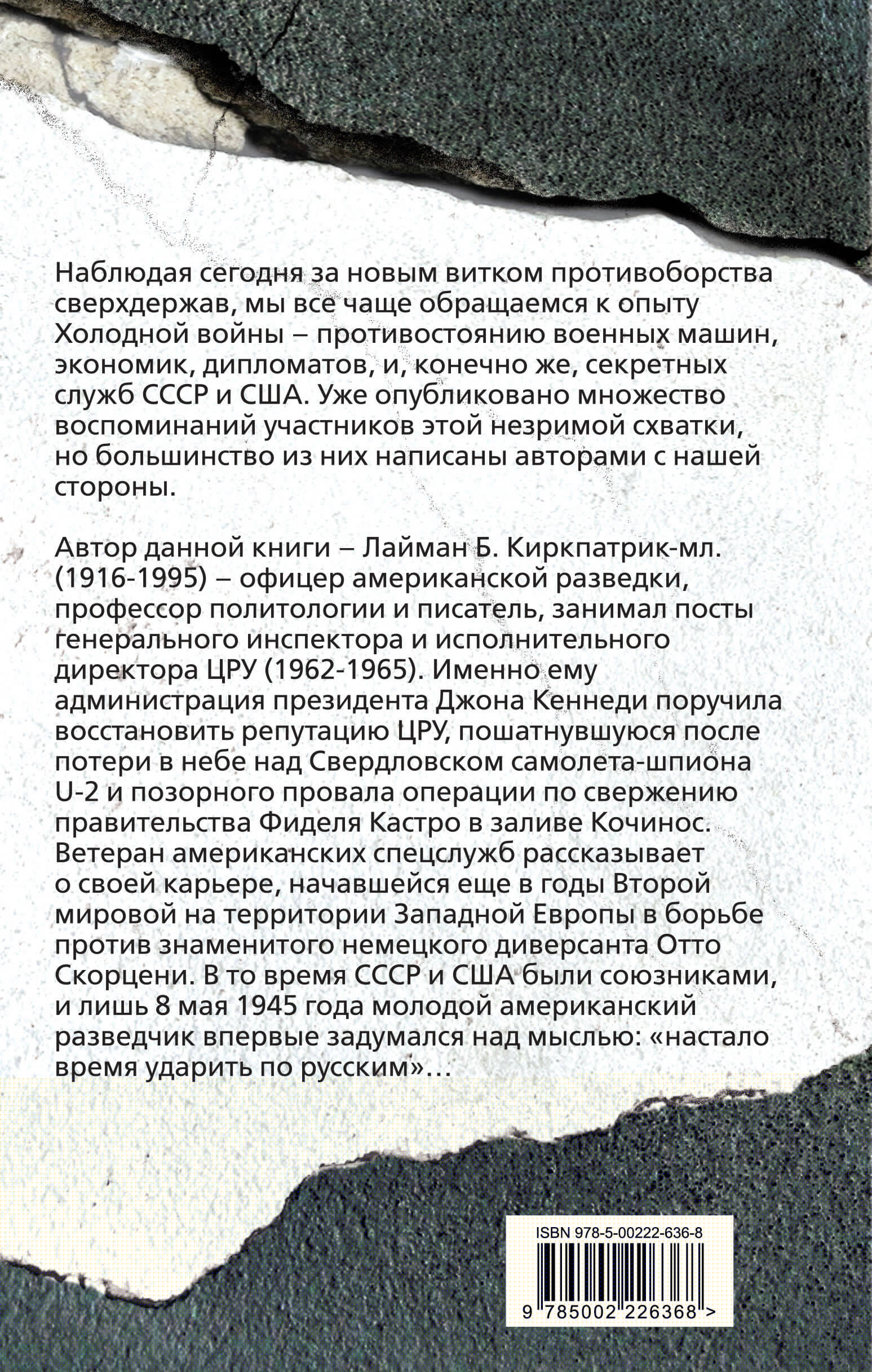 Наблюдая сегодня за новым витком противоборства сверхдержав, мы все чаще обращаемся к опыту «холодной войны» - противостоянию военных машин, экономик, дипломатов и, конечно же, секретных служб СССР и США. Уже опубликовано множество воспоминаний участников этой незримой схватки, но большинство из них написаны авторами с нашей стороны. Автор данной книги Лайман Б. Киркпатрик-мл. (1916-1995) - офицер американской разведки, профессор политологии и писатель, занимал посты генерального инспектора и исполнительного директора ЦРУ (1962-1965). Именно ему администрация президента Джона Кеннеди поручила восстановить репутацию ЦРУ, пошатнувшуюся после потери в небе над Свердловском самолета-шпиона U-2 и позорного провала операции по свержению правительства Фиделя Кастро в заливе Кочинос. Ветеран американских спецслужб рассказывает о своей карьере, начавшейся еще в годы Второй мировой на территории Западной Европы в борьбе против знаменитого немецкого диверсанта Отто Скорцени. В то время СССР и США были союзниками, и лишь 8 мая 1945 года молодой американский разведчик впервые задумался над мыслью: «Настало время ударить по русским»…| Издательство | Родина Издательство ООО |
