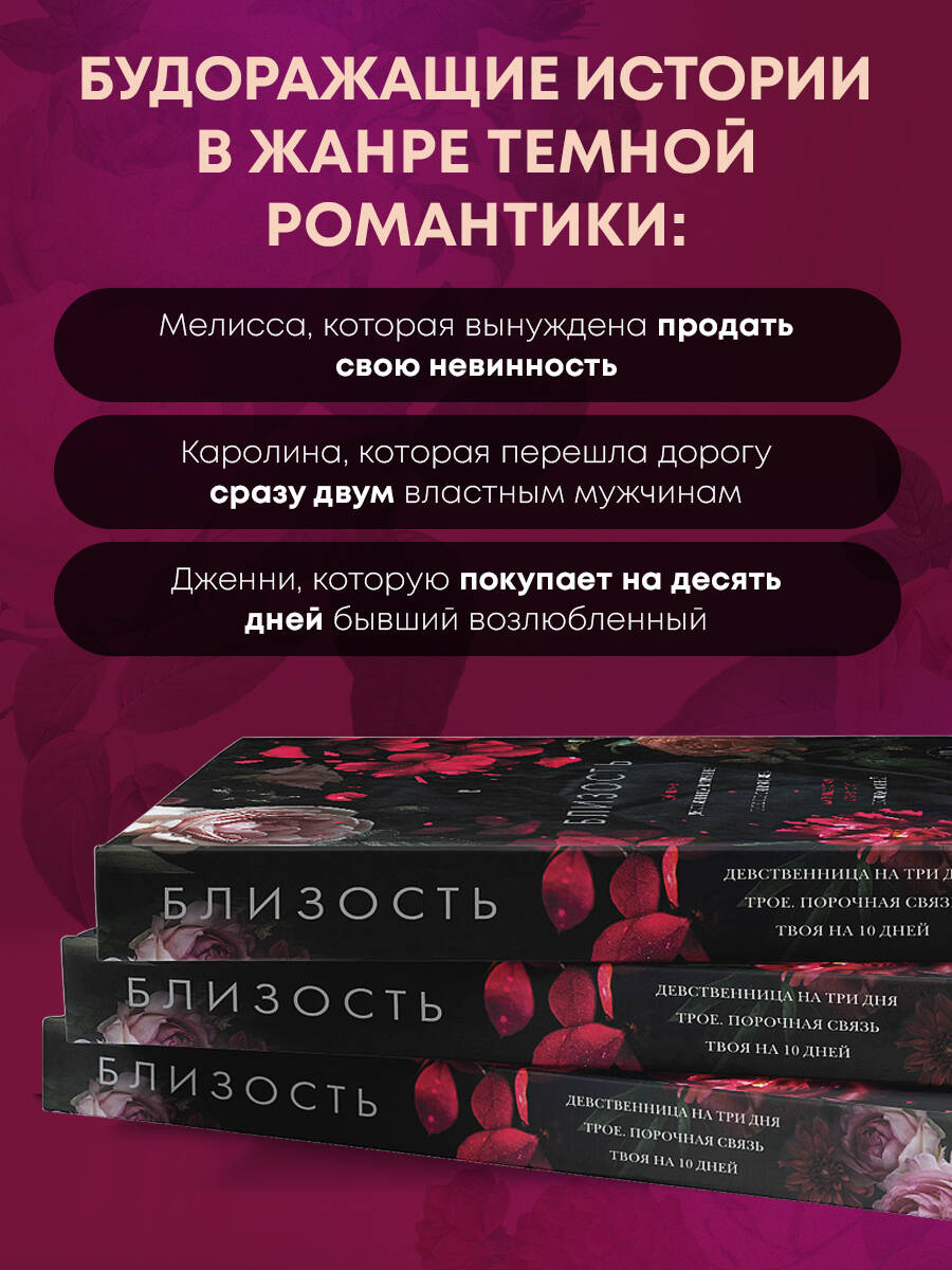 Аннотация: Близость. Три книги в одной (закрашенный обрез): Девственница на три дня, Трое. Порочная связь, Твоя на 10 дней