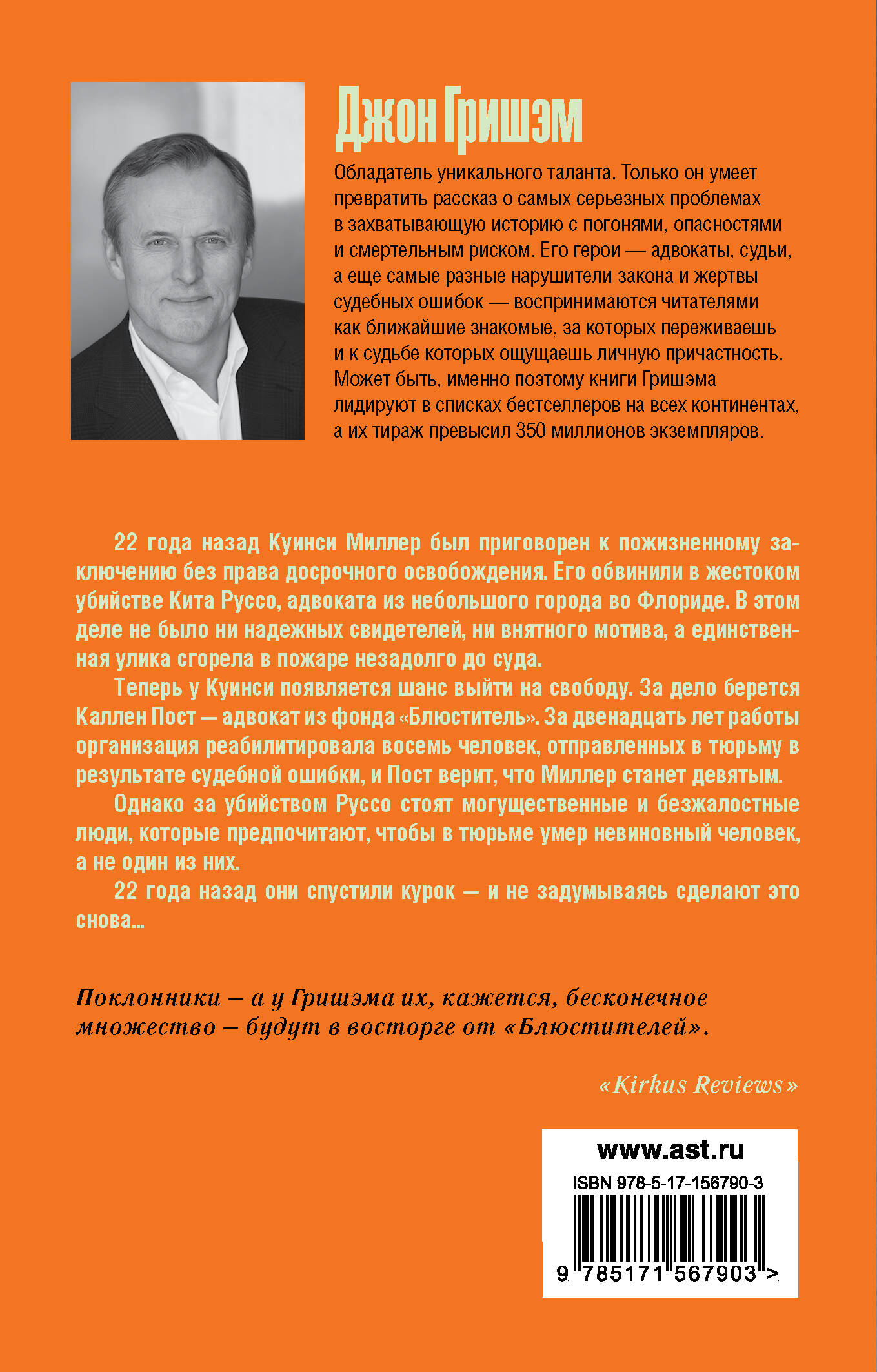 22 года назад Куинси Миллер был приговорен к пожизненному заключению без права досрочного освобождения. Его обвинили в жестоком убийстве Кита Руссо, адвоката из небольшого города во Флориде. В этом деле не было ни надежных свидетелей, ни внятного мотива, а единственная улика сгорела в пожаре незадолго до суда. Теперь у Куинси появляется шанс выйти на свободу. За дело берется Каллен Пост - адвокат из фонда "Блюститель". За двенадцать лет работы организация реабилитировала восемь человек, отправленных в тюрьму в результате судебной ошибки, и Пост верит, что Миллер станет девятым. Однако за убийством Руссо стоят могущественные и безжалостные люди, которые предпочитают, чтобы в тюрьме умер невиновный человек, а не один из них. 22 года назад они спустили курок - и не задумываясь сделают это снова…| Издательство | ИЗДАТЕЛЬСТВО "АСТ" |