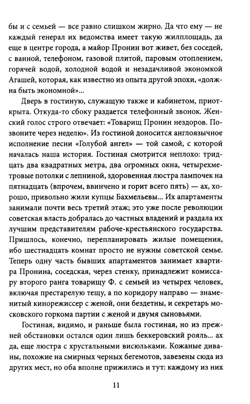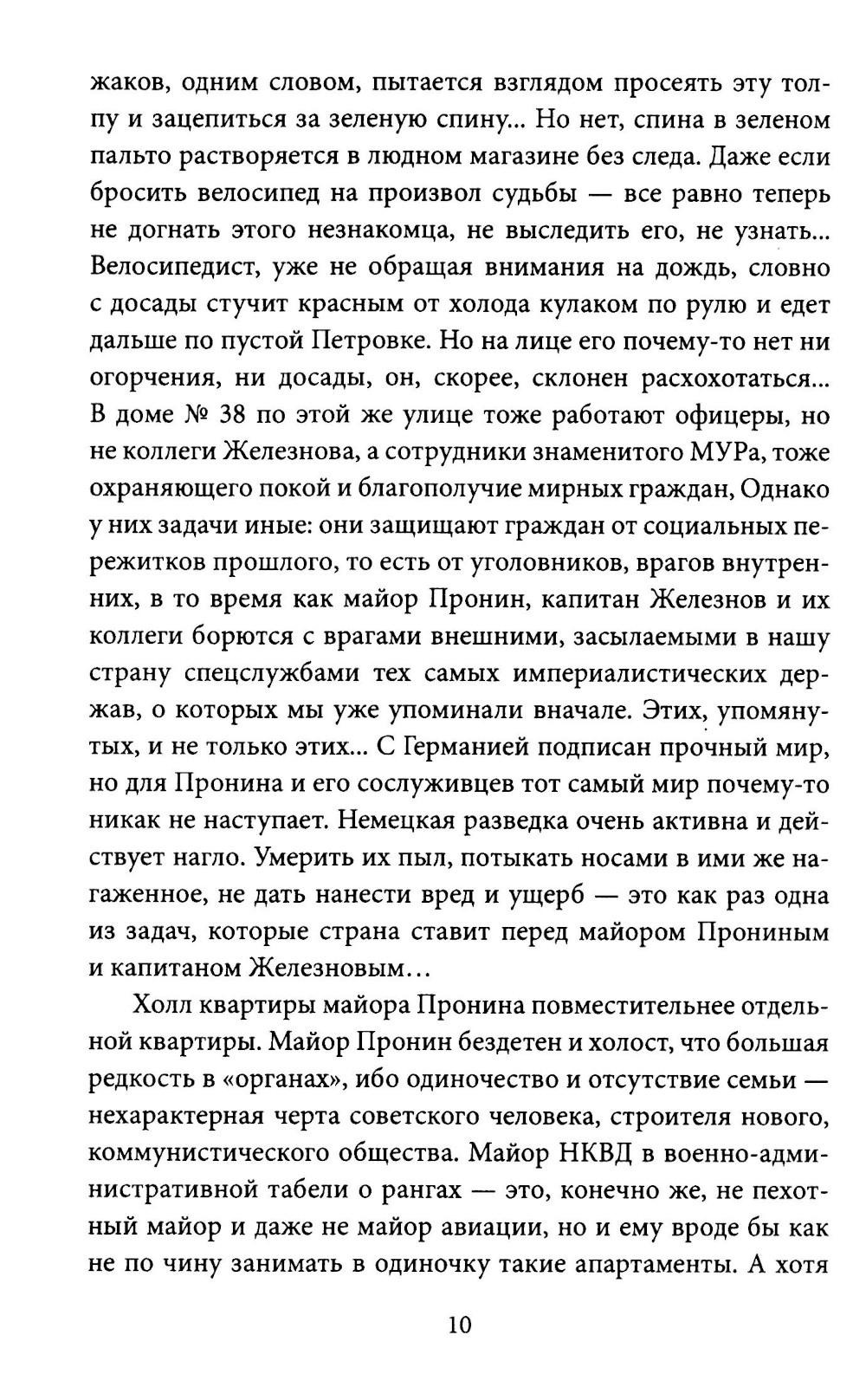 Майор Пронин - советский Шерлок Холмс и Джеймс Бонд в одном лице - не знал поражений. Он принимает вызов и в атмосфере предвоенной Москвы дает бой западной разведке. Сюжет ведет нас от загадки к загадке - по параболе запутанных приключений. Только Иван Пронин способен раскрыть тайну шпионского патефона! Головокружительная интрига закручивается под чарующие звуки блюза «Голубой ангел», модной в то время песенки, исполняемой Марлен Дитрих. Книга просто необходима каждому, кто интересуется историей СССР и жанром советских «военных приключений», а проще говоря - шпионским романом.| Издательство | Родина |
