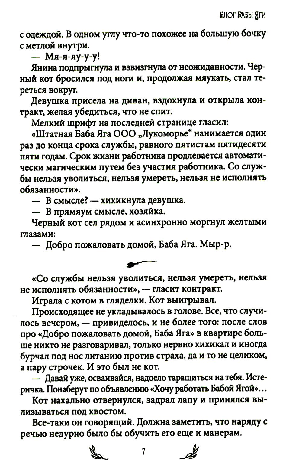 Могущественная корпорация ООО «Лукоморье», раскинувшая свои сети далеко за пределы сказочного мира, заманивает и связывает нерушимым контрактом беспечных людей. Так в ловушку попала Янина, волею судьбы, против желания ставшая Бабой Ягой - проводником душ сказочного мира. Она не смогла смириться со своей участью, решила раскрыть тайну, добраться до верхушки корпорации и изменить порядок вещей. В этом ей помогают верный компаньон и новые сказочные друзья.| Издательство | Крафтовая литература |