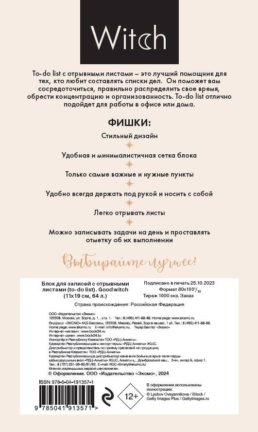 Аннотация: Блок для записей с отрывными листами (to-do list). Good witch (11х19 см, 64 л.)