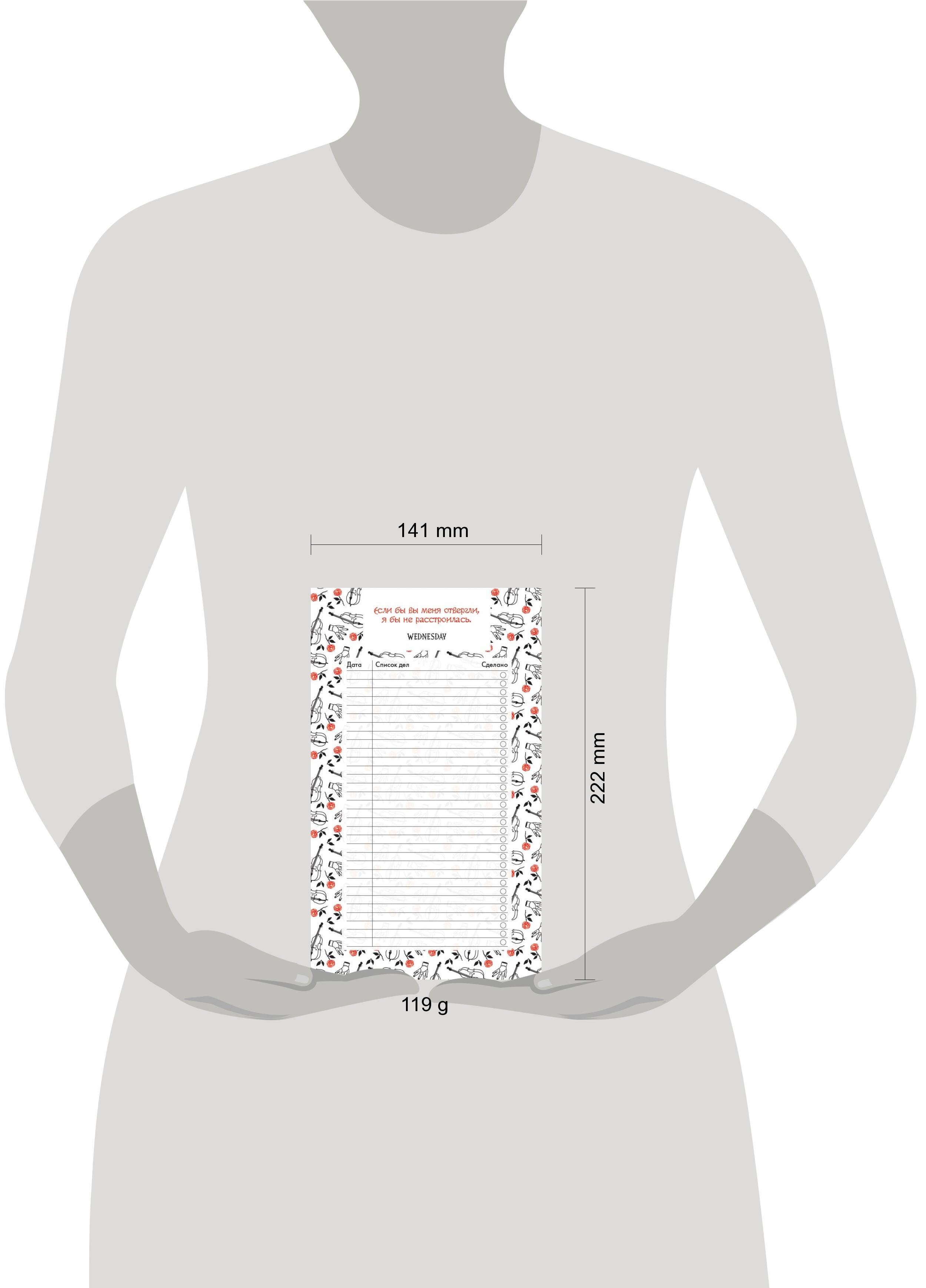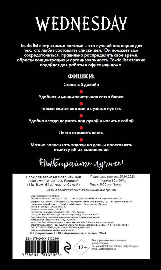 Аннотация: Блок для записей с отрывными листами (to-do list). Уэнсдей (11х19 см, 64 л., черно-белый)