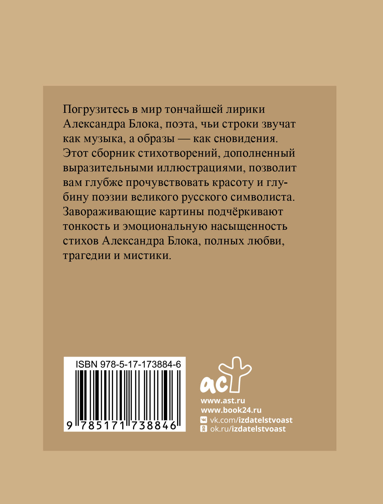 Погрузитесь в мир тончайшей лирики Александра Блока, поэта, чьи строки звучат как музыка, а образы - как сновидения. Этот сборник стихотворений, дополненный выразительными иллюстрациями, позволит вам глубже прочувствовать красоту и глубину поэзии великого русского символиста. Завораживающие картины подчёркивают тонкость и эмоциональную насыщенность стихов Александра Блока, полных любви, трагедии и мистики.| Издательство | Издательство "АСТ" |