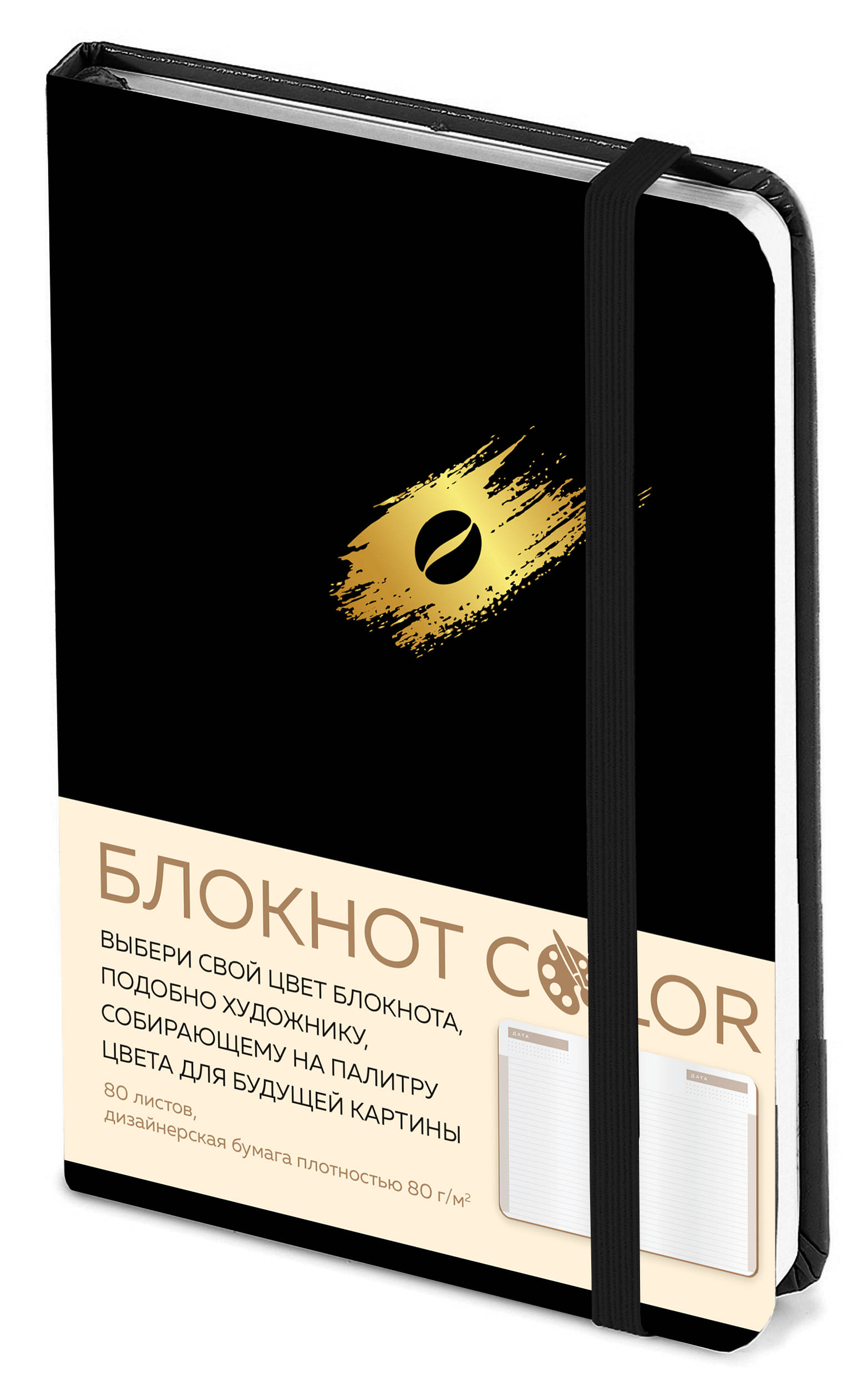 Аннотация: Блокнот Color (черный). Резинка, тиснение зол. фольгой, искусственная кожа, 80 л, А5