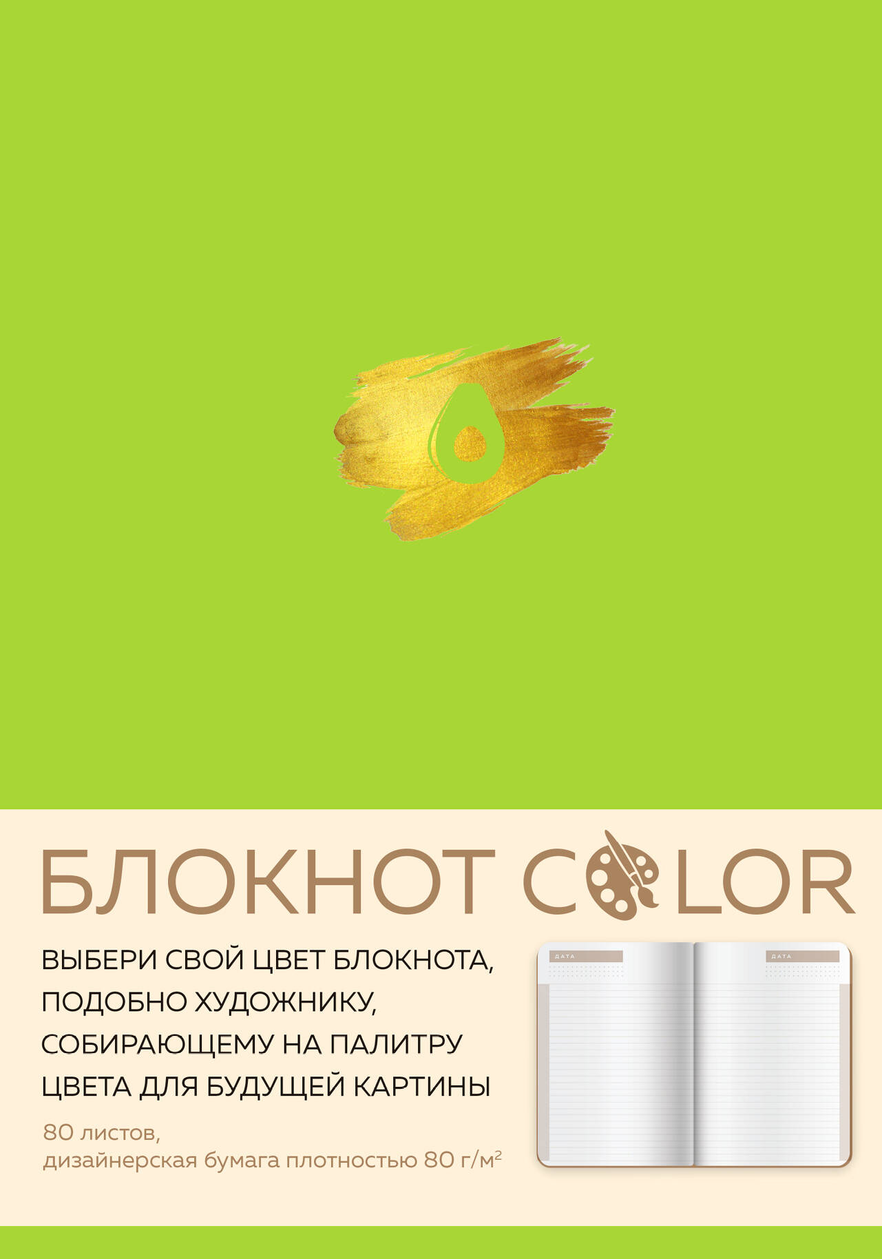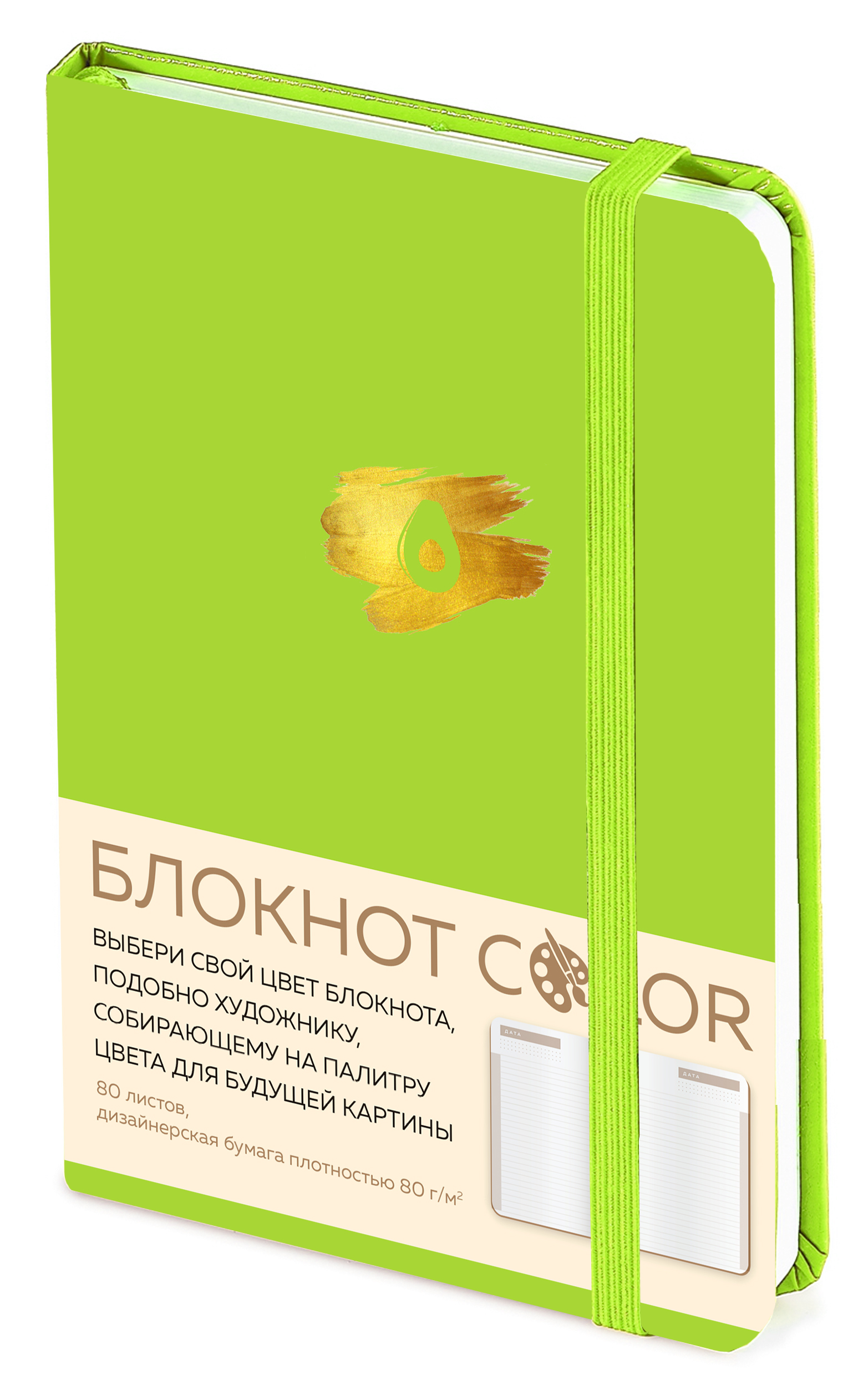 Аннотация: Блокнот Color (салатовый). Резинка, тиснение зол. фольгой, искусственная кожа, 80 л., А5