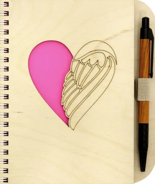 Блокнот деревянный с ручкой. Сердце